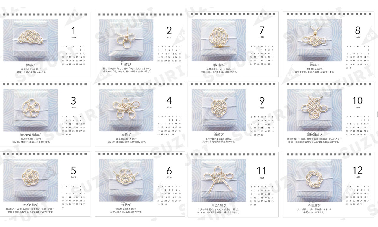 2026年最初の新商品『縁起の良い結び卓上カレンダー 』をプリントグッズ販売サービスSUZURIにてご用意いたしました。