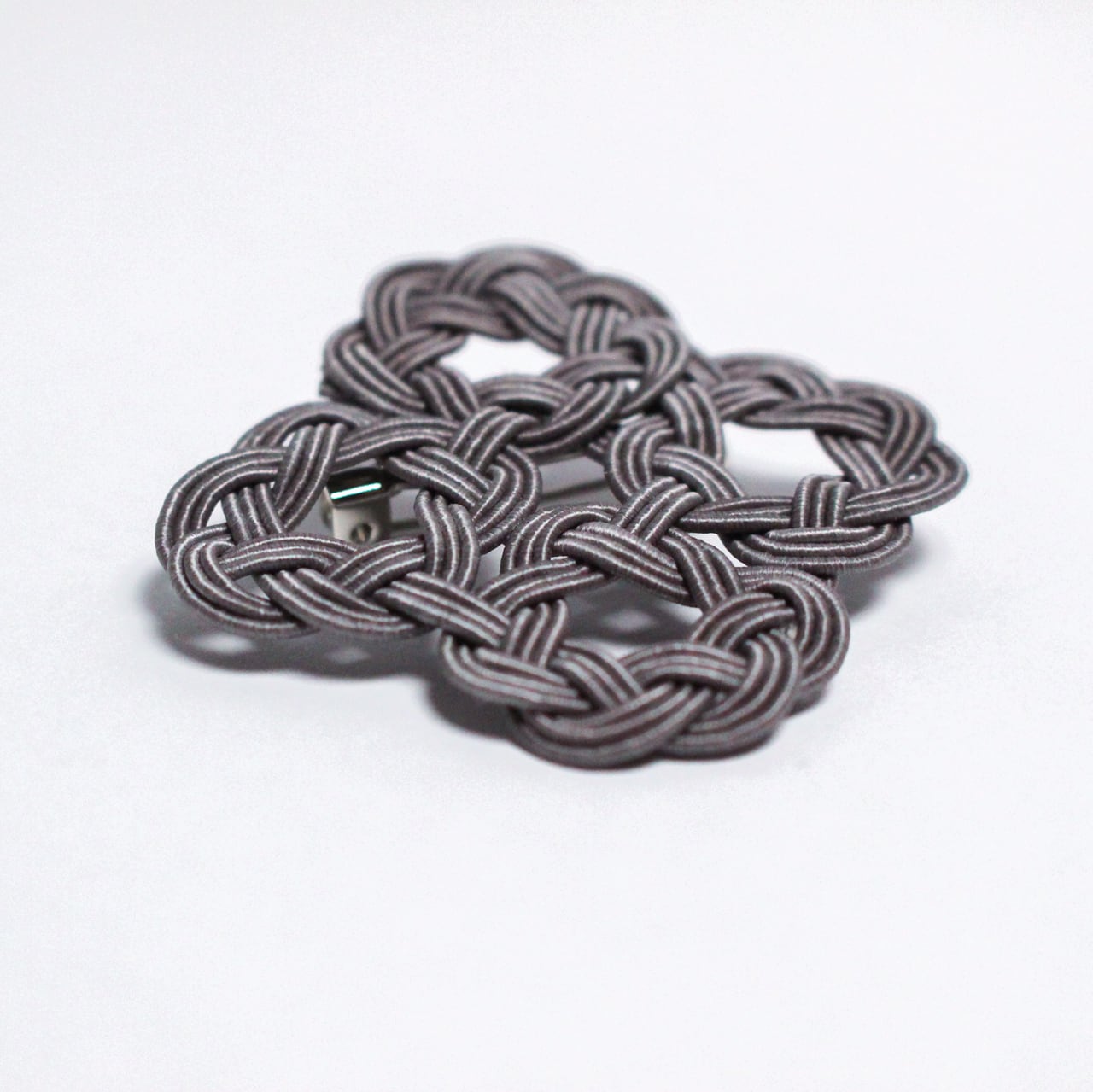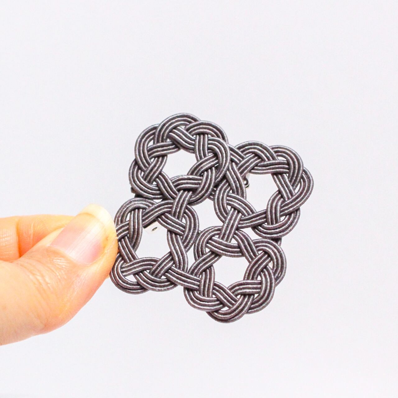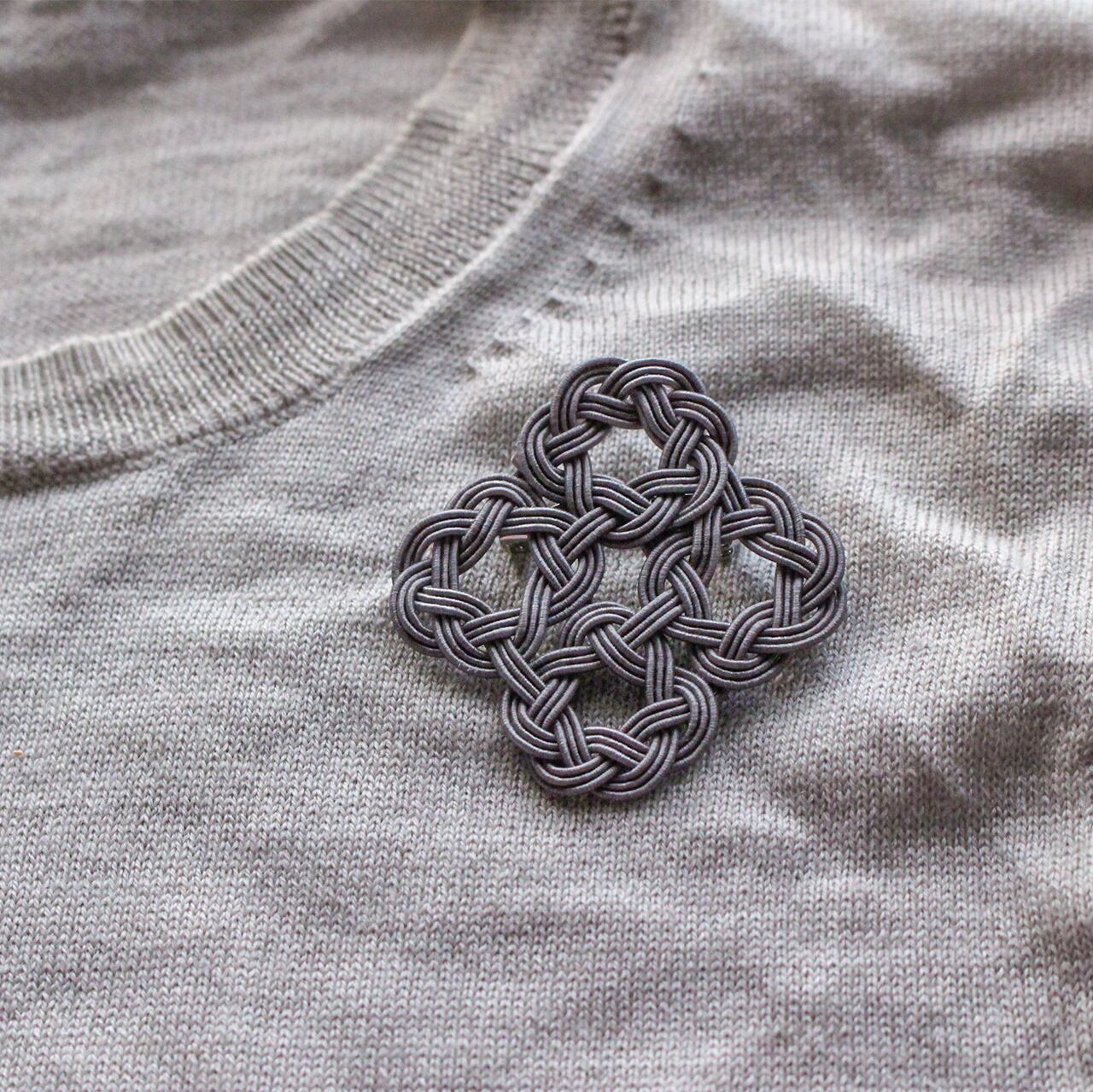 水引WaOブローチ 四つ輪 チャコールグレー