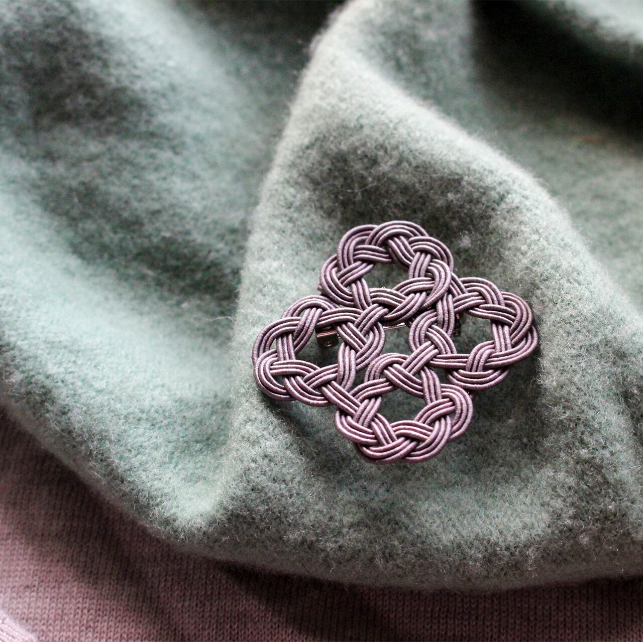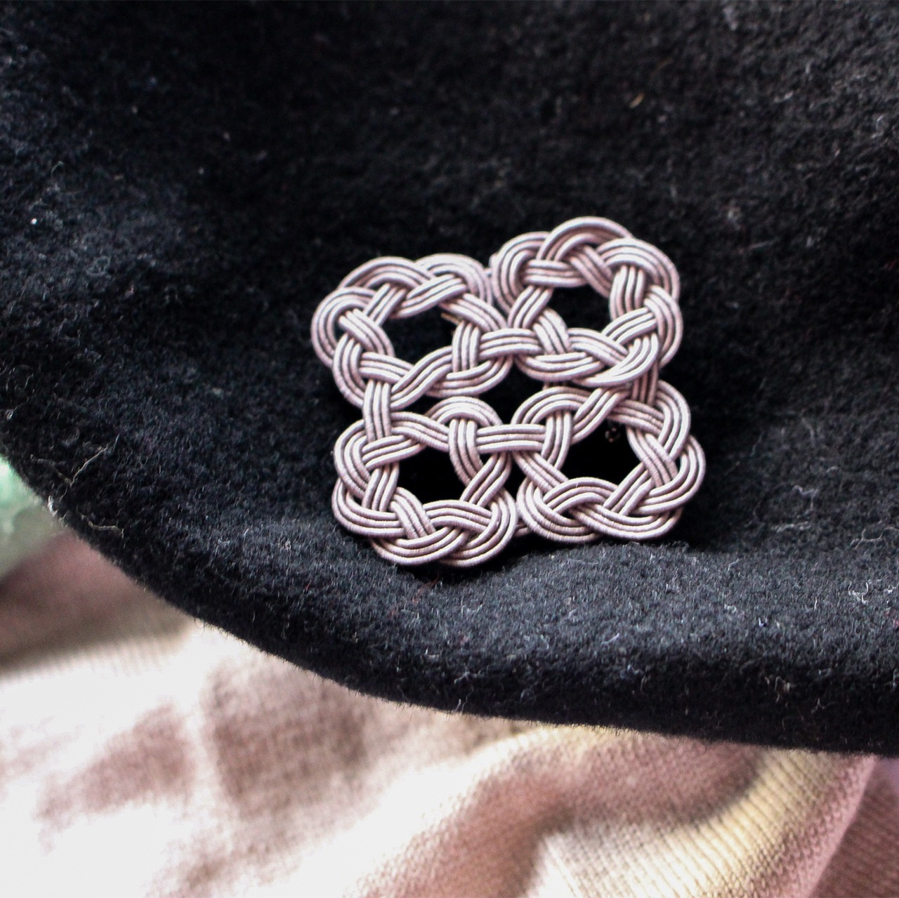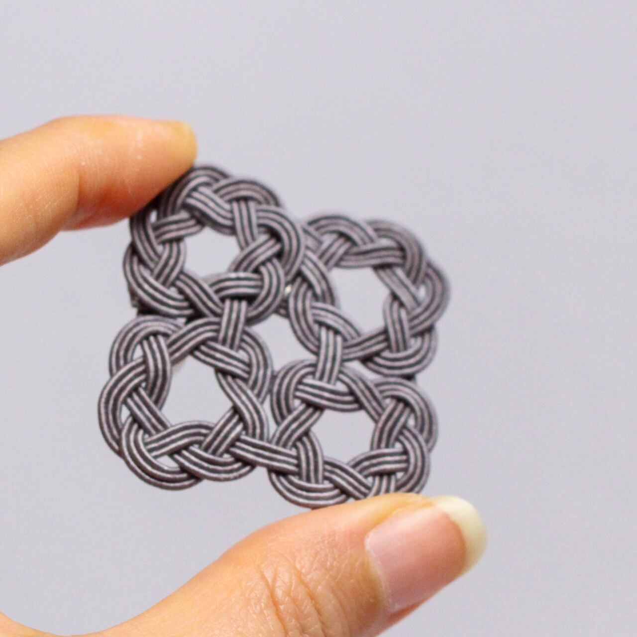 水引WaOブローチ 四つ輪 チャコールグレー