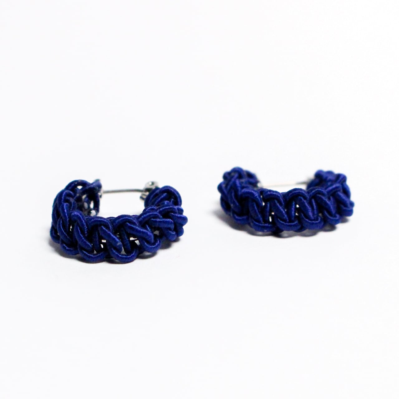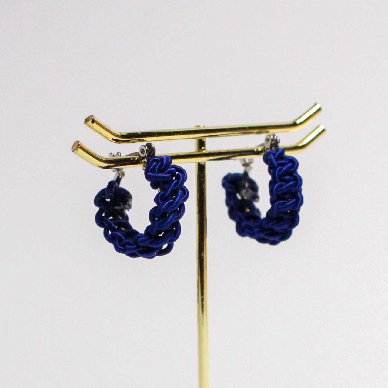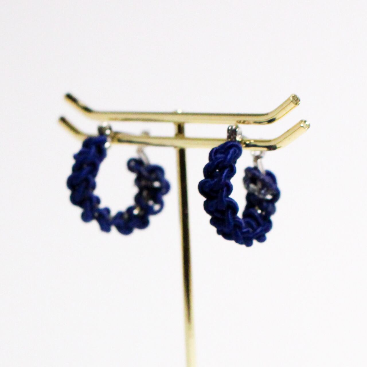 日本の伝統工芸「水引細工」で全体が結ばれた水引フープピアスです。