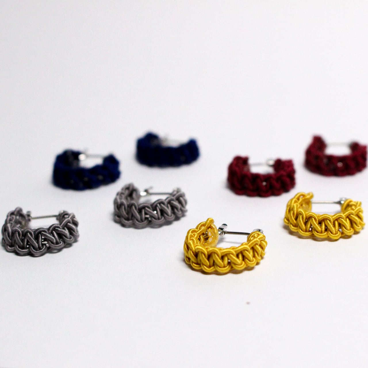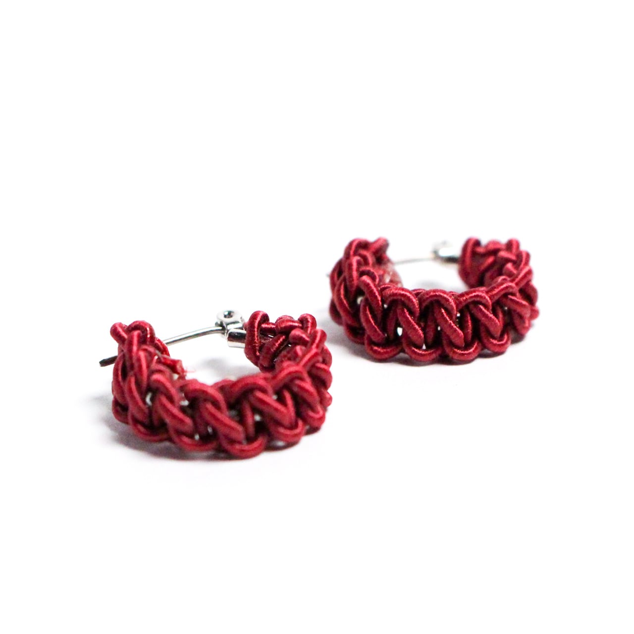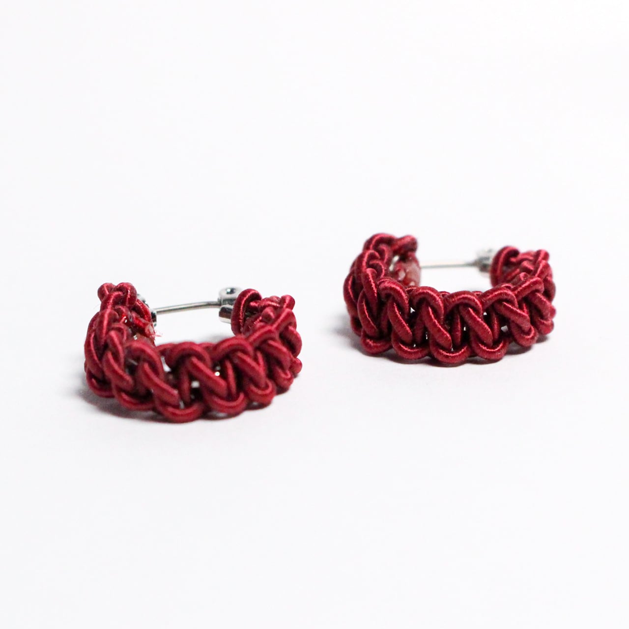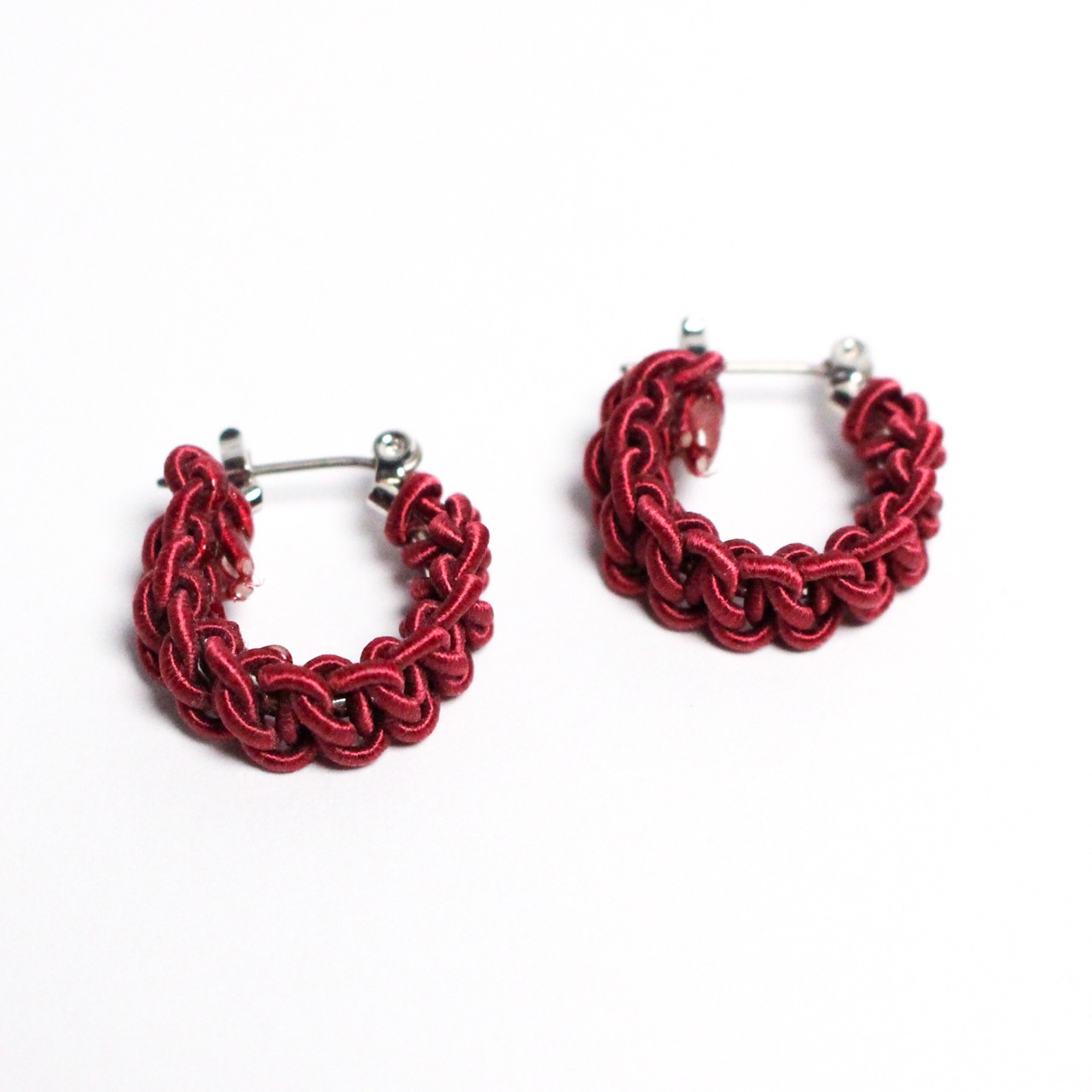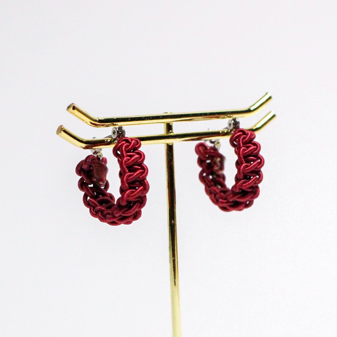 日本の伝統工芸「水引細工」で全体が結ばれた水引フープピアスです。