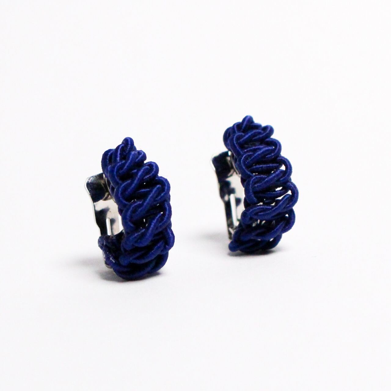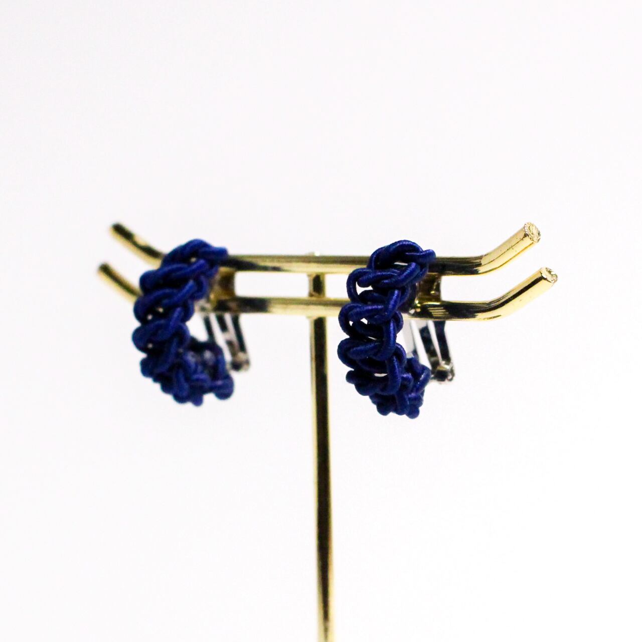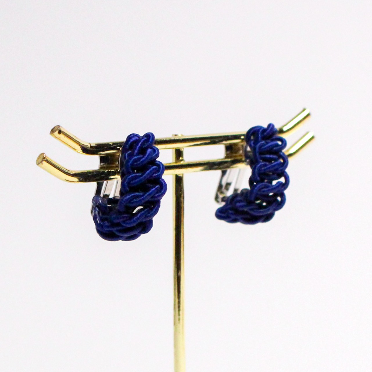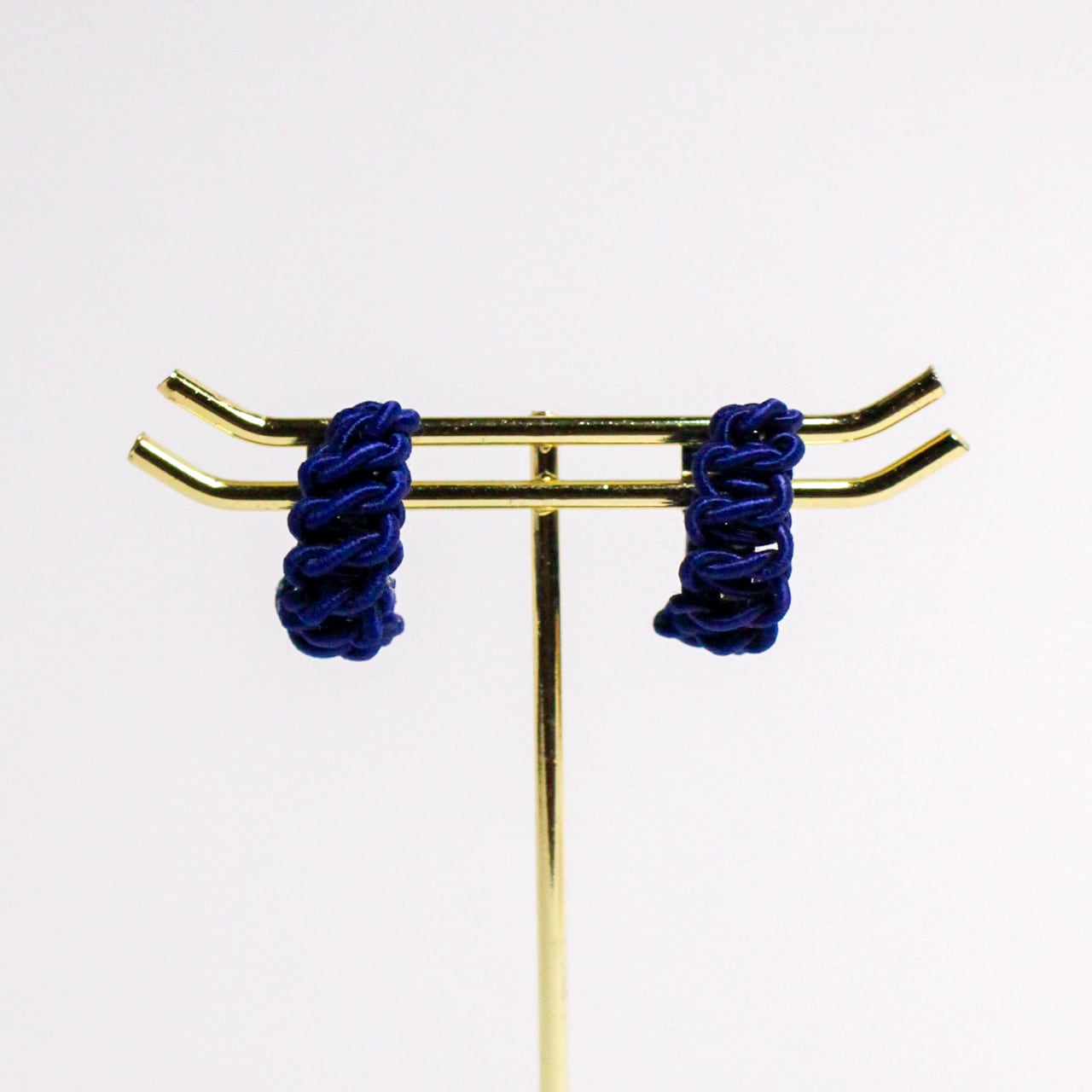 日本の伝統工芸「水引細工」で全体が結ばれた水引半フープイヤリングです。
