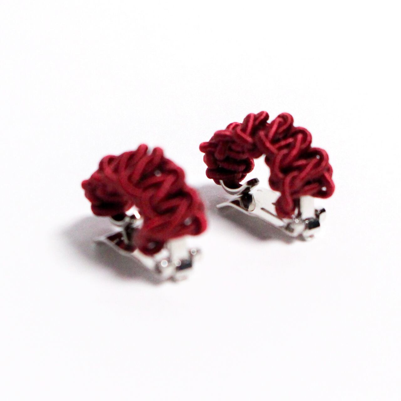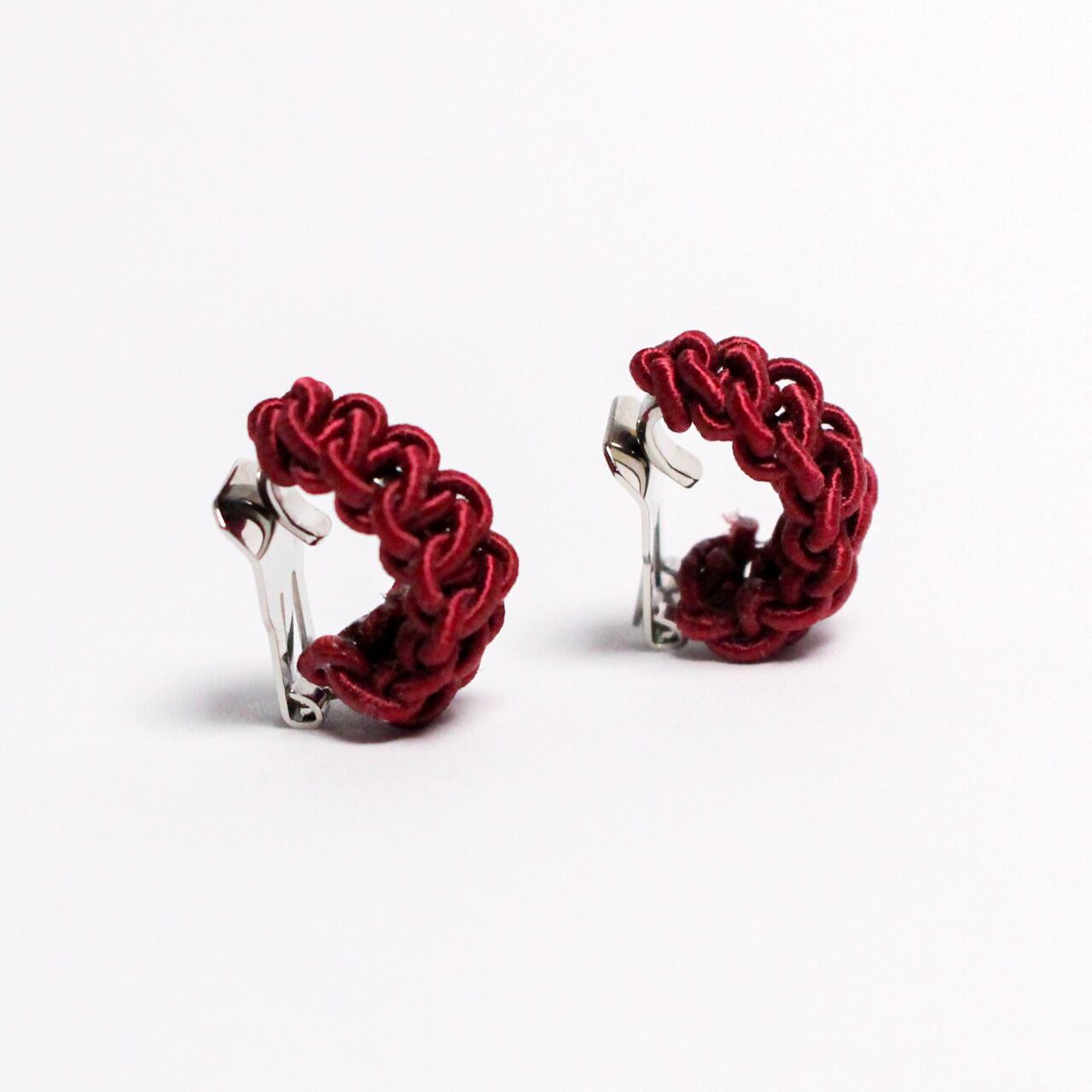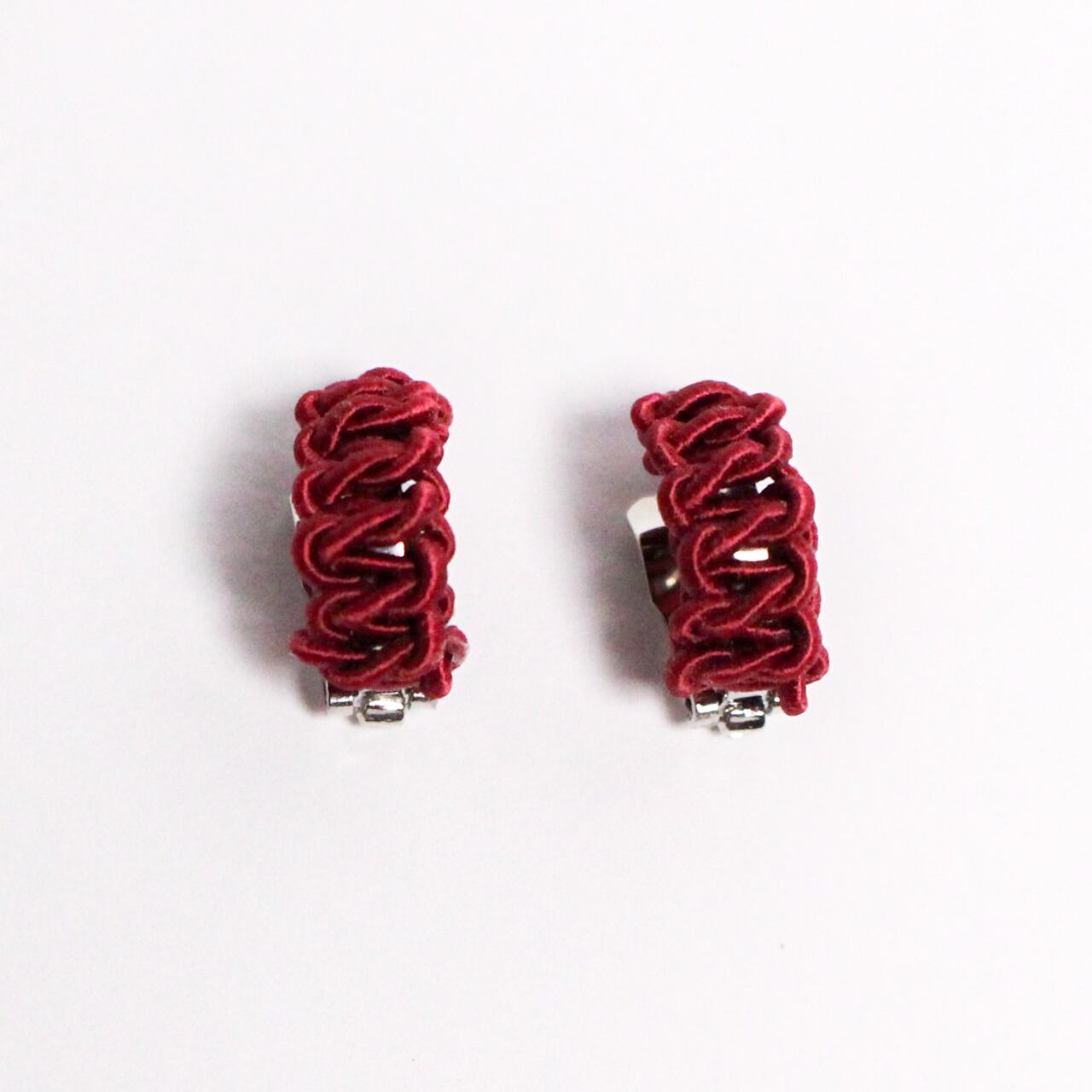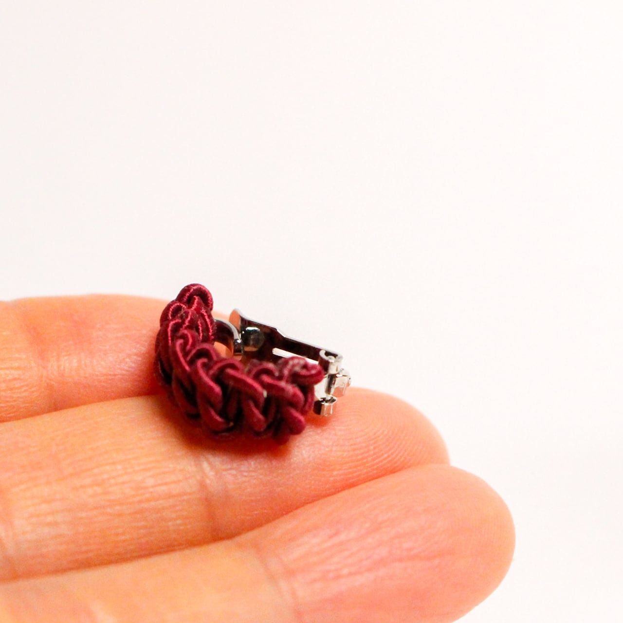 まるで耳から生えているかのように、耳たぶに優しくフィットするデザイン。深みのあるボルドーカラーが、肌に美しく映え、シンプルなスタイルにエレガントなアクセントを加えます。軽やかでありながらも存在感があり、和の美を添えてくれるアイテムです。