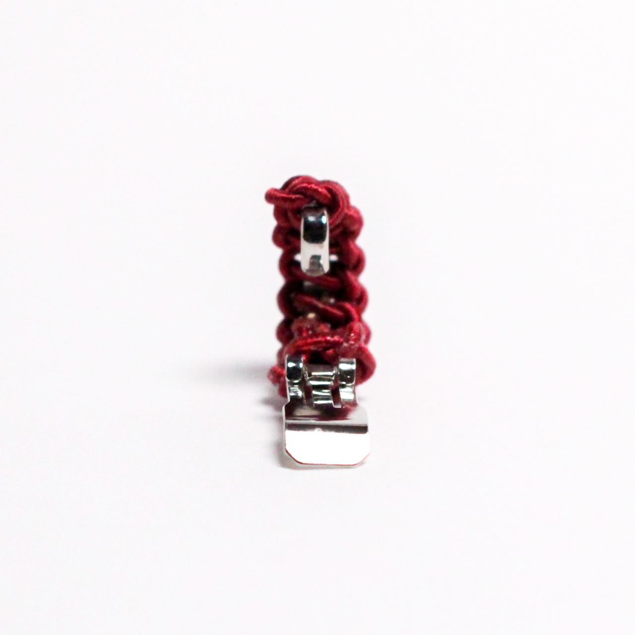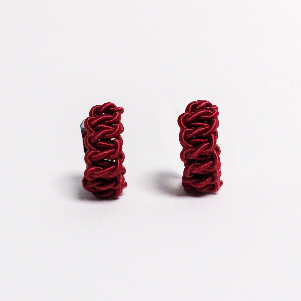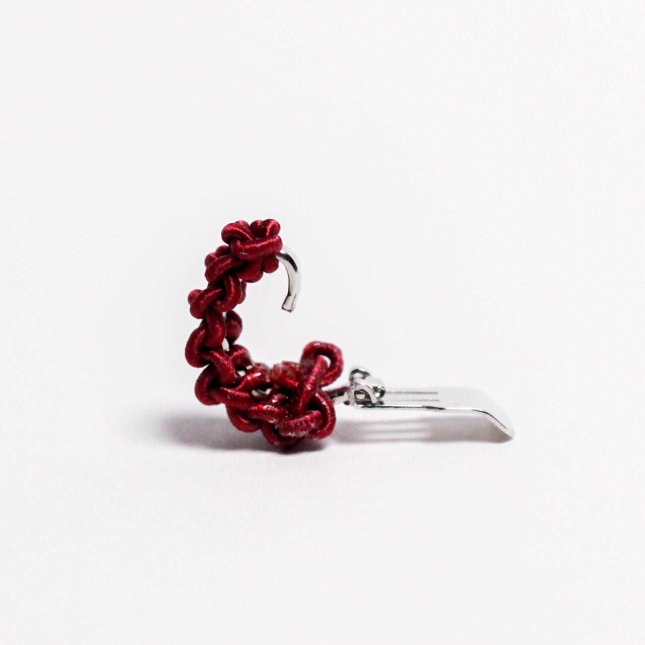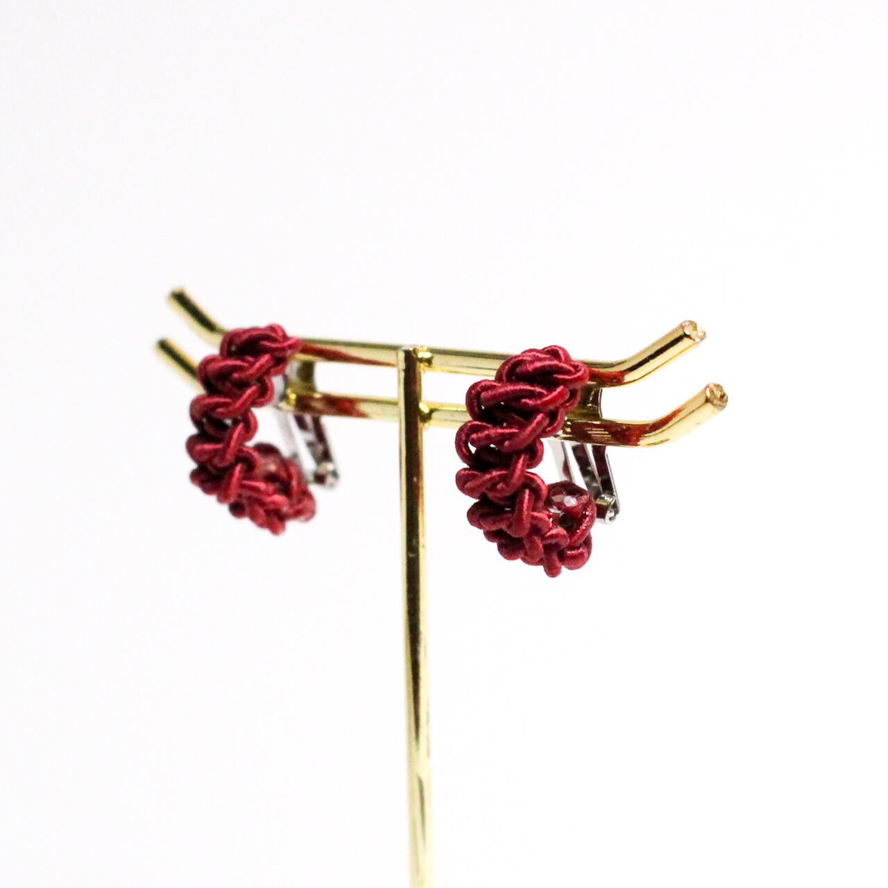まるで耳から生えているかのように、耳たぶに優しくフィットするデザイン。深みのあるボルドーカラーが、肌に美しく映え、シンプルなスタイルにエレガントなアクセントを加えます。軽やかでありながらも存在感があり、和の美を添えてくれるアイテムです。