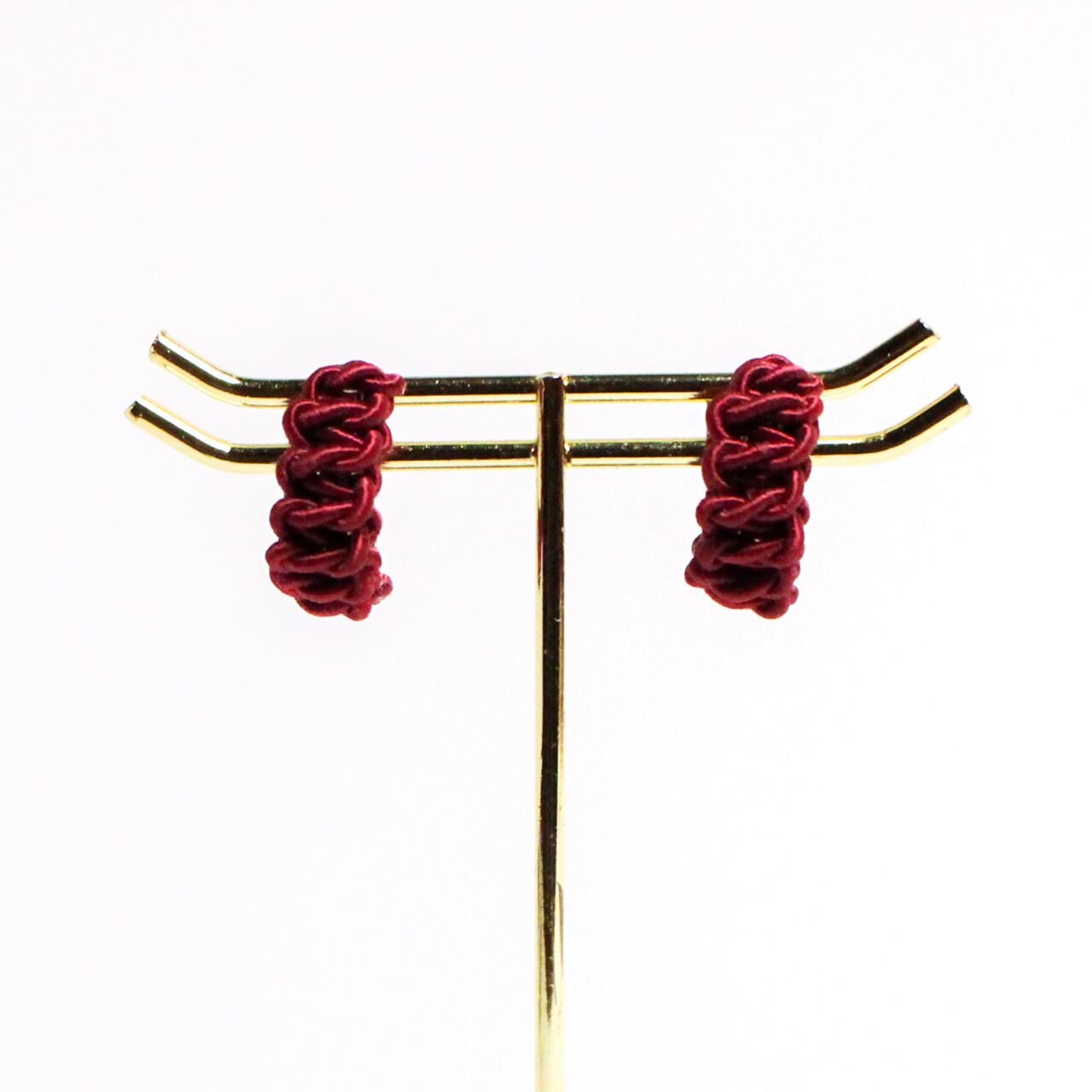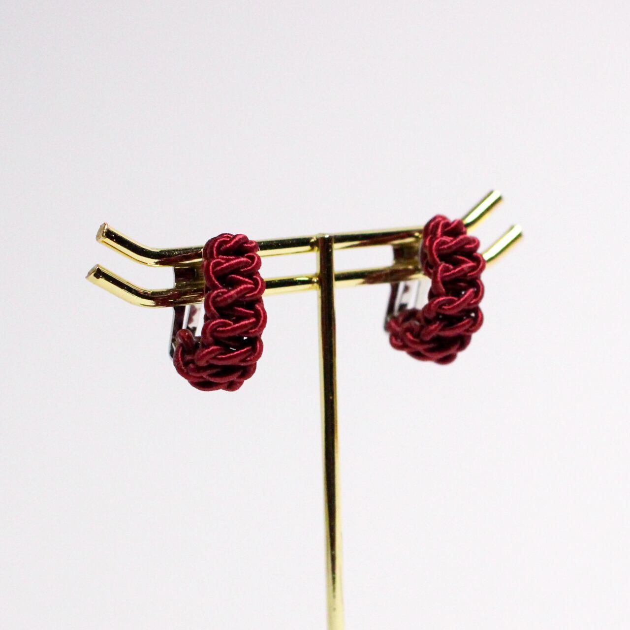 日本の伝統工芸「水引細工」で全体が結ばれた水引半フープイヤリングです。