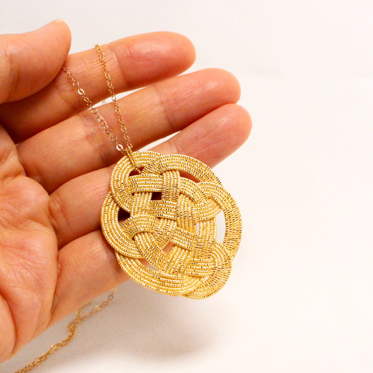 伝統的に伝わる縁起の良い亀結びをネックレスにお仕立てしました。