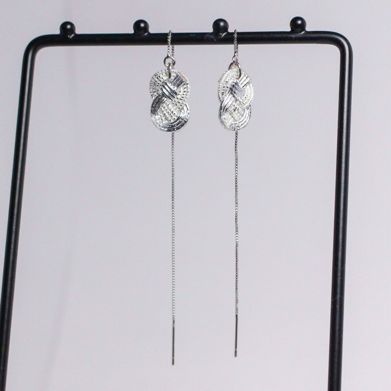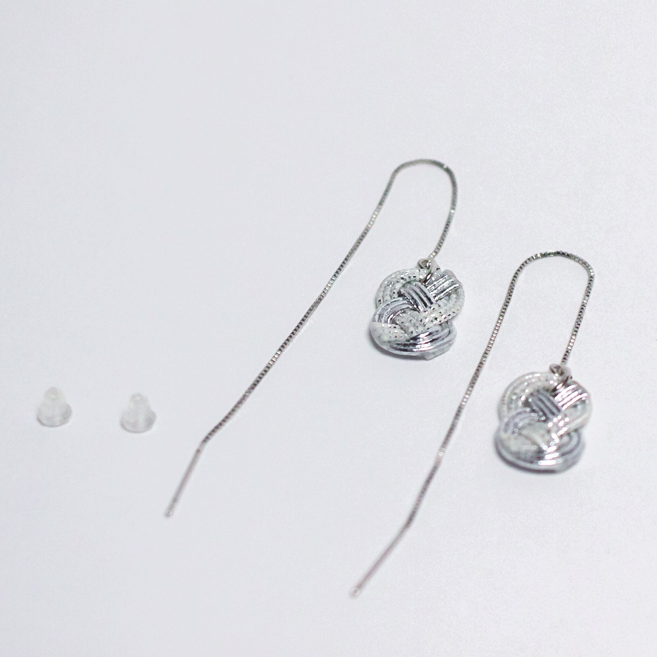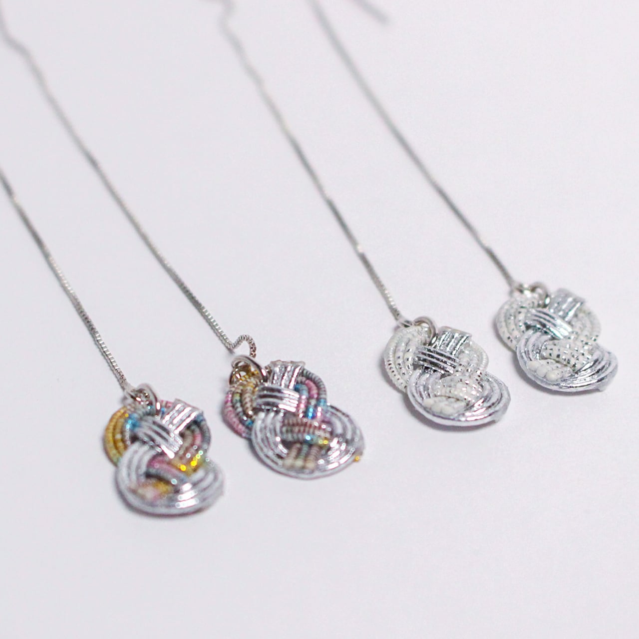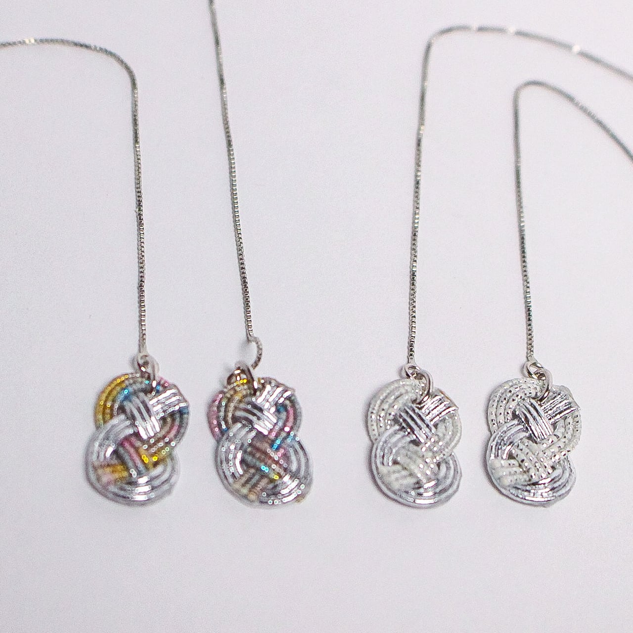 水引ピアス・イヤリング - MUSUHI - シルバー&ホワイトシルバー