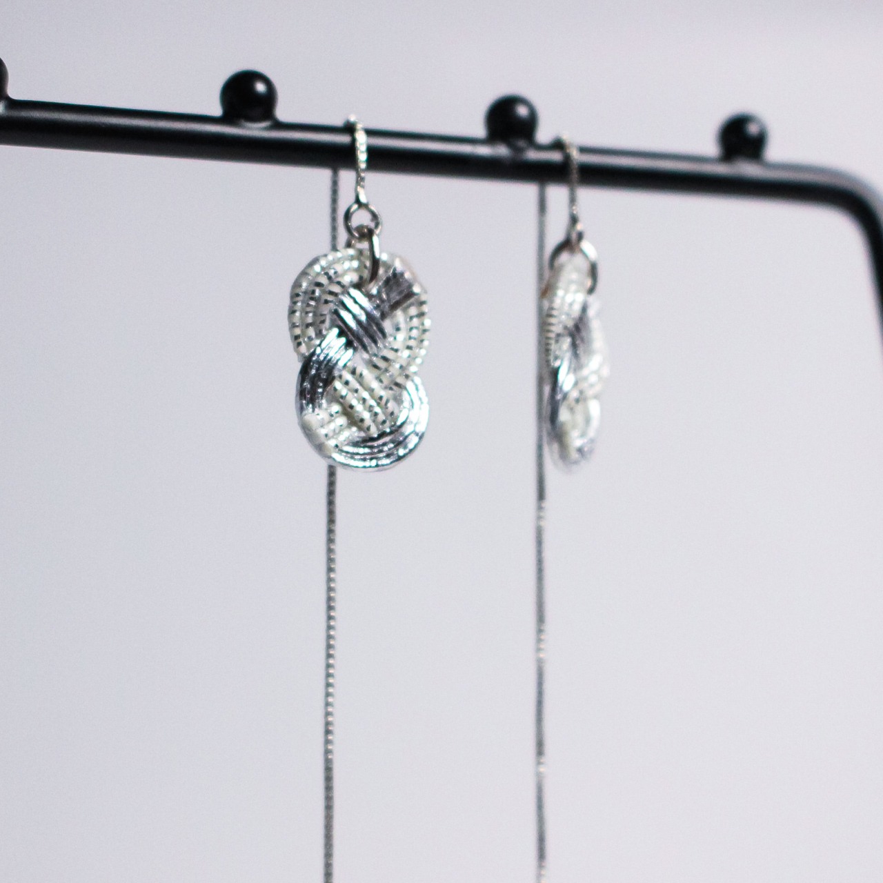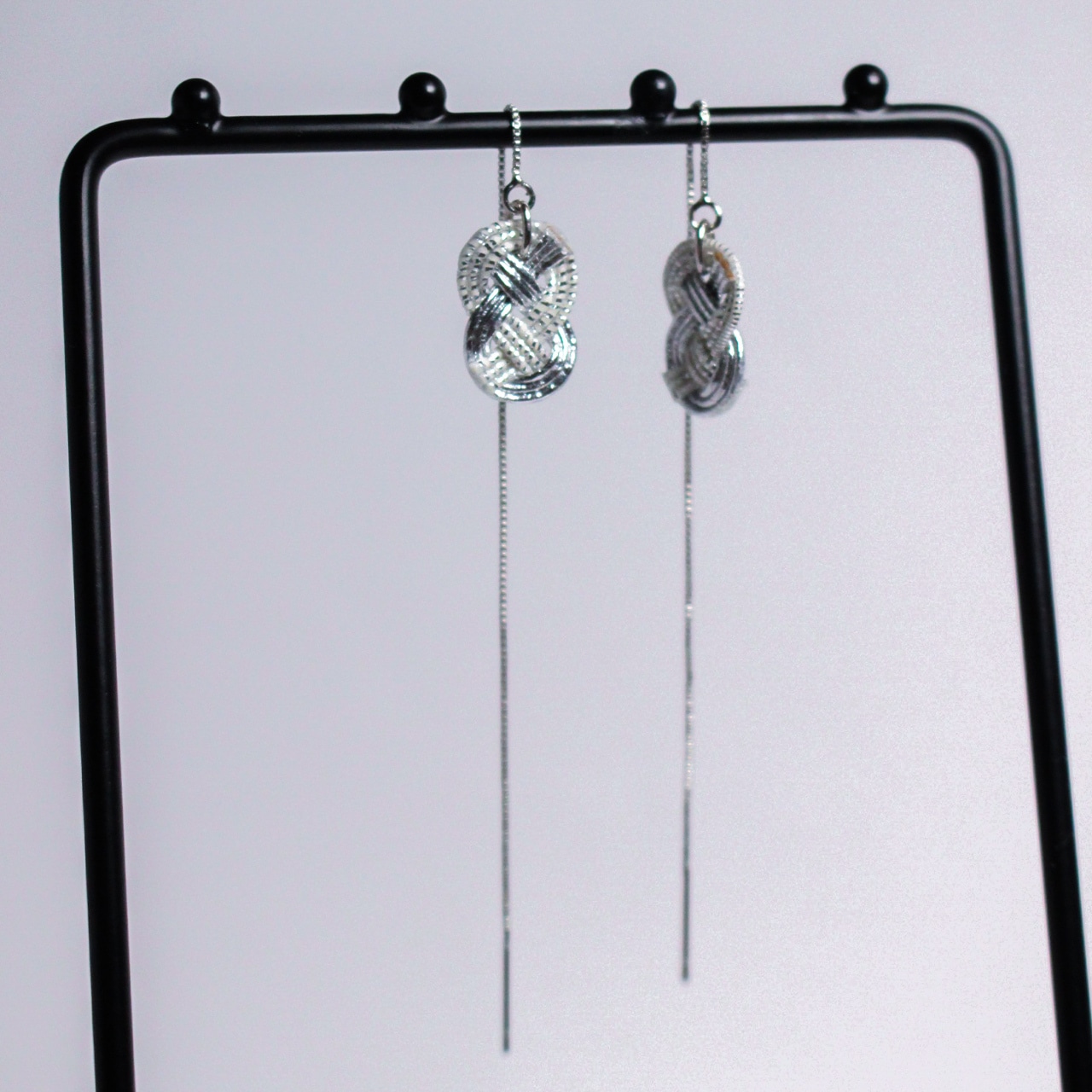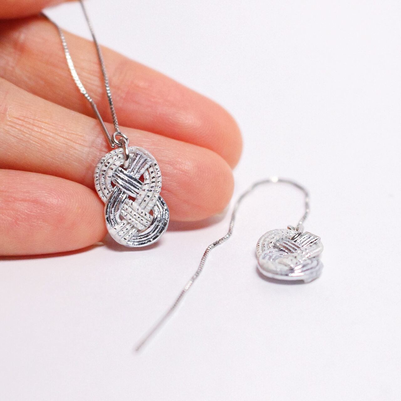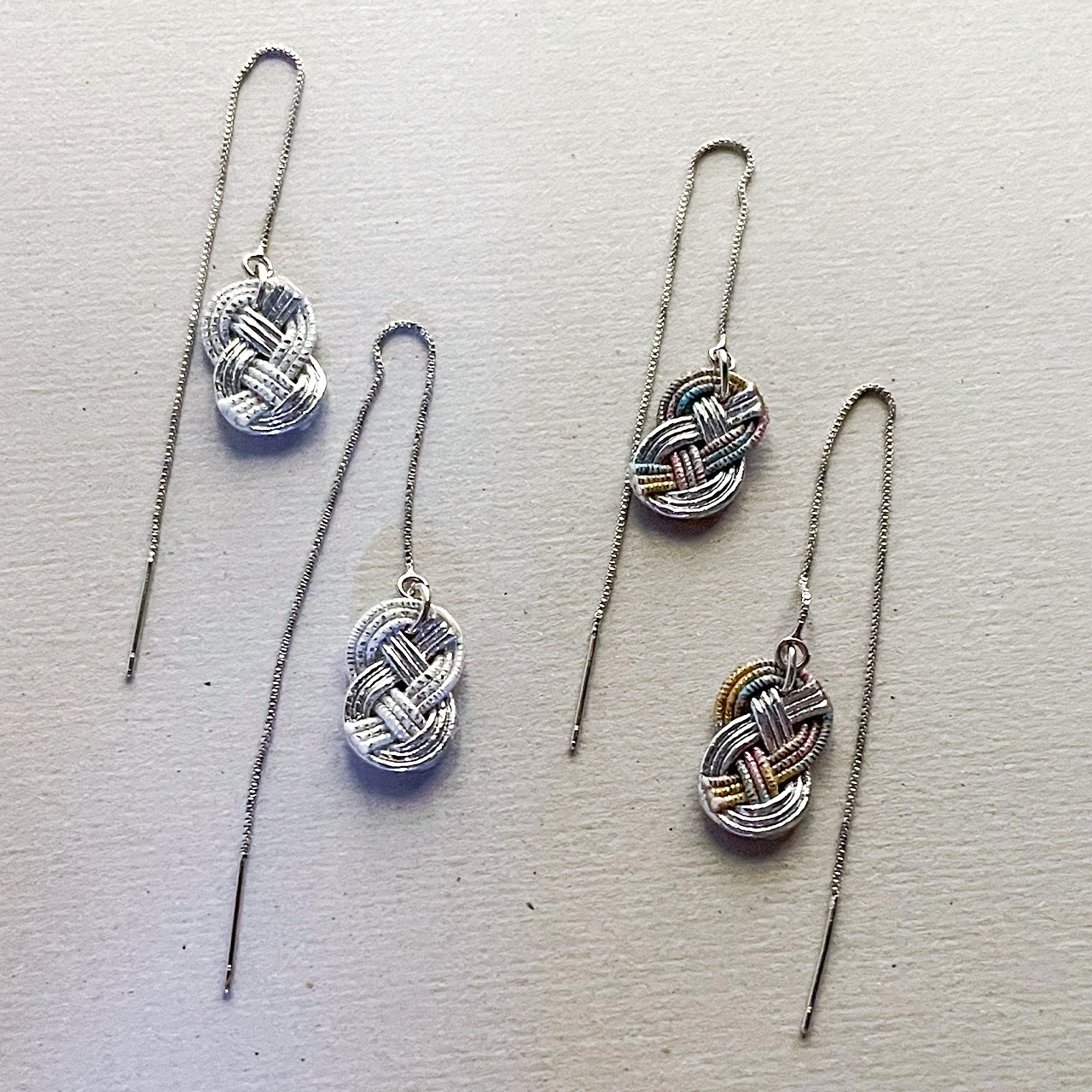 水引ピアス・イヤリング - MUSUHI - シルバー&ホワイトシルバー