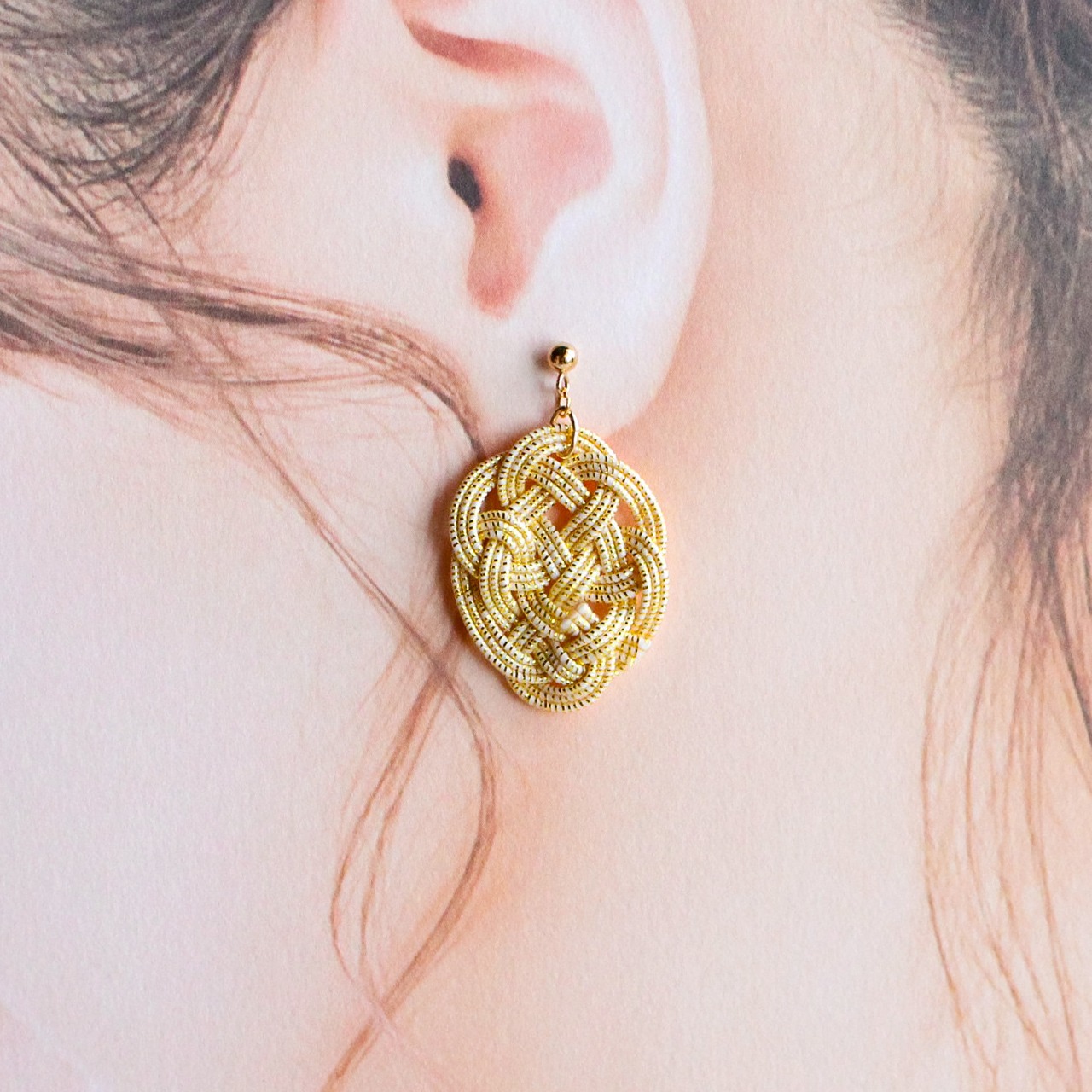 艶っぽい日本伝統の水引細工「亀結び」を身にまとうピアス・イヤリング。