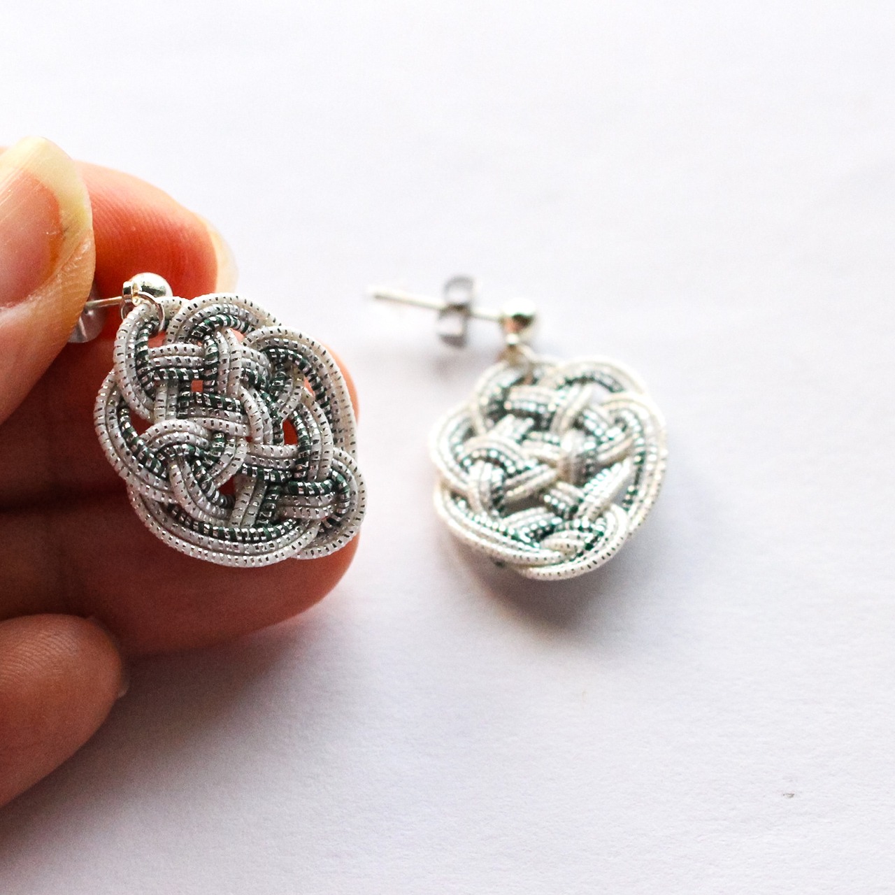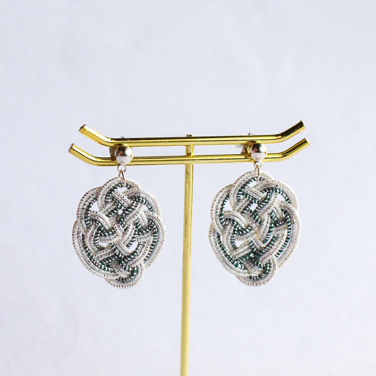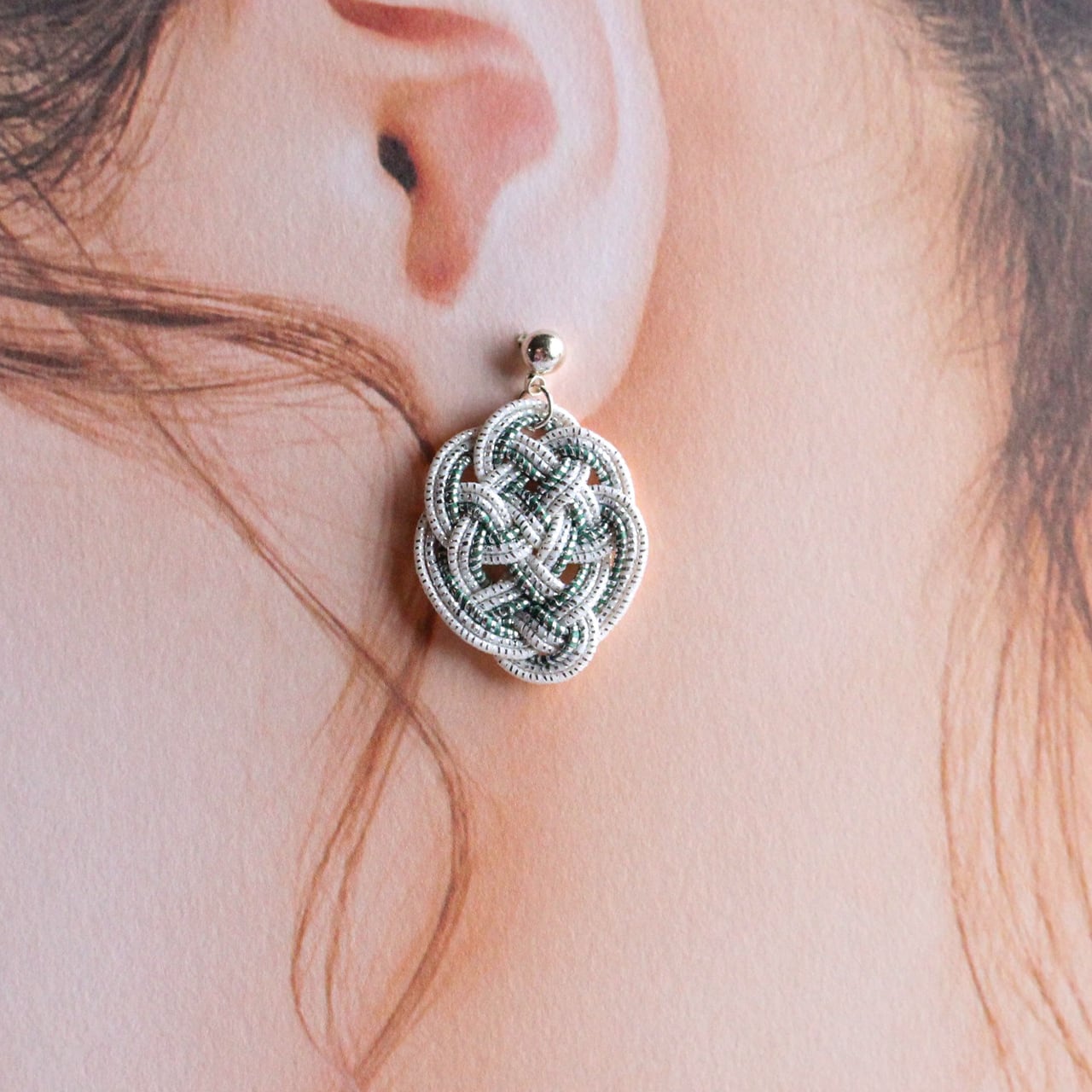 水引ピアス・イヤリング - TSUYA - シルバー×グリーン