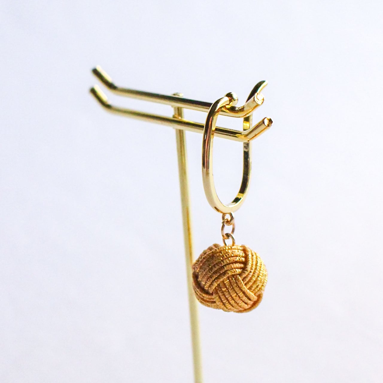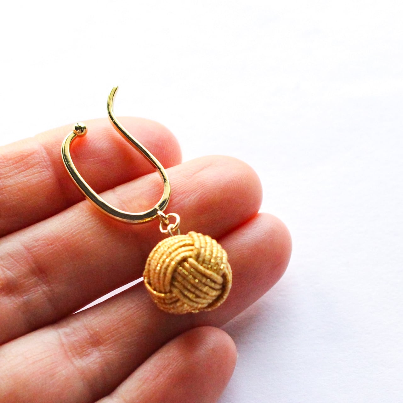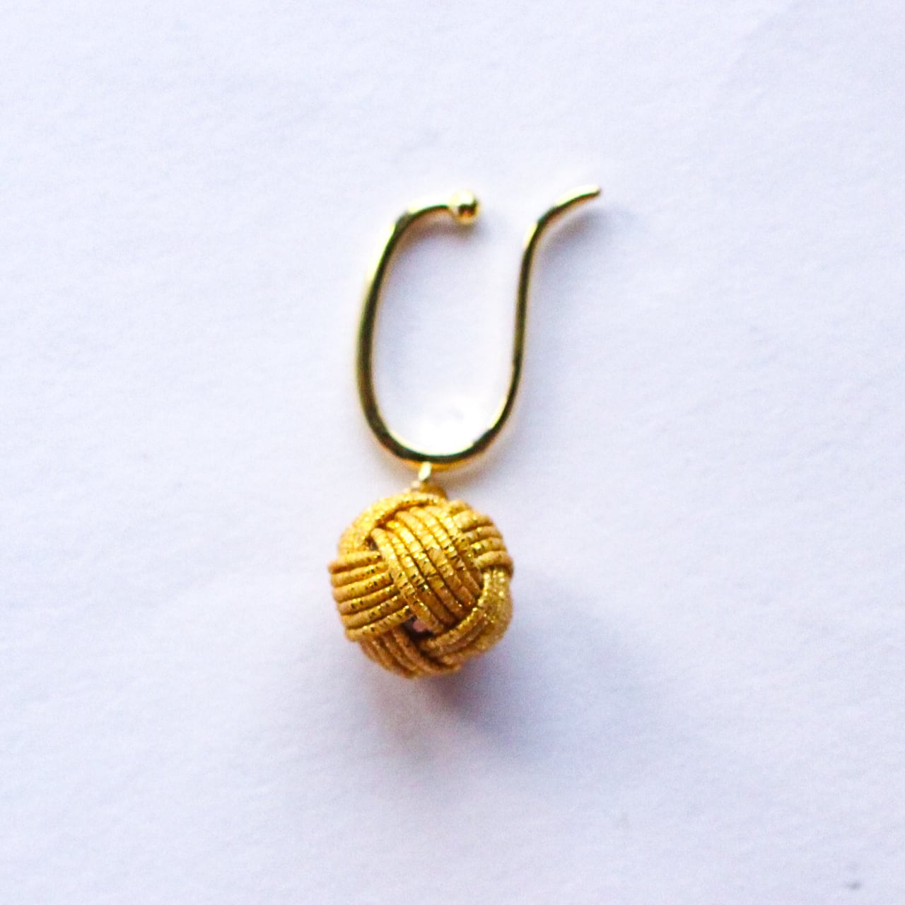 水引パール イヤーカフは、丸くまとまり末永く続くご縁を願ってひとつひとつ手で大切に結ばれたあわじ玉結びを身にまとうアクセサリーです。およそ15mmの大粒あわじ玉結びは、まるで特別な和宝石を身に着けているような奥ゆかしい気分にさせてくれます。