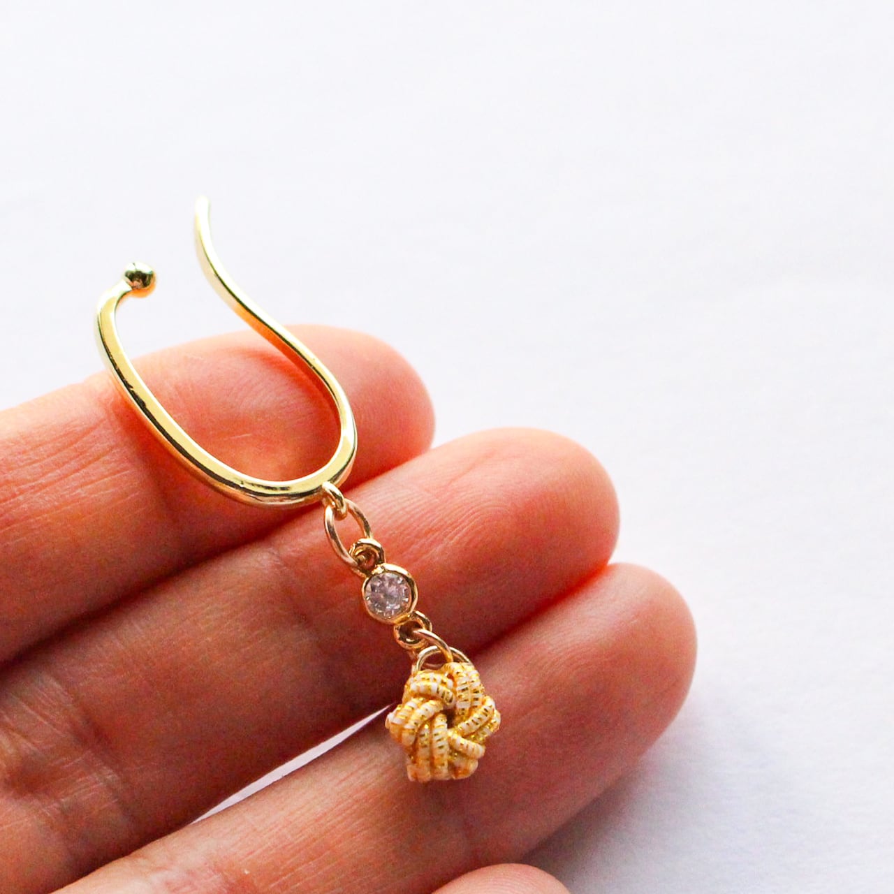 小ぶりでかわいらしい星型水引とラウンドファセットカットが施されたキュービックジルコニアがキラリと輝くイヤーカフです。
