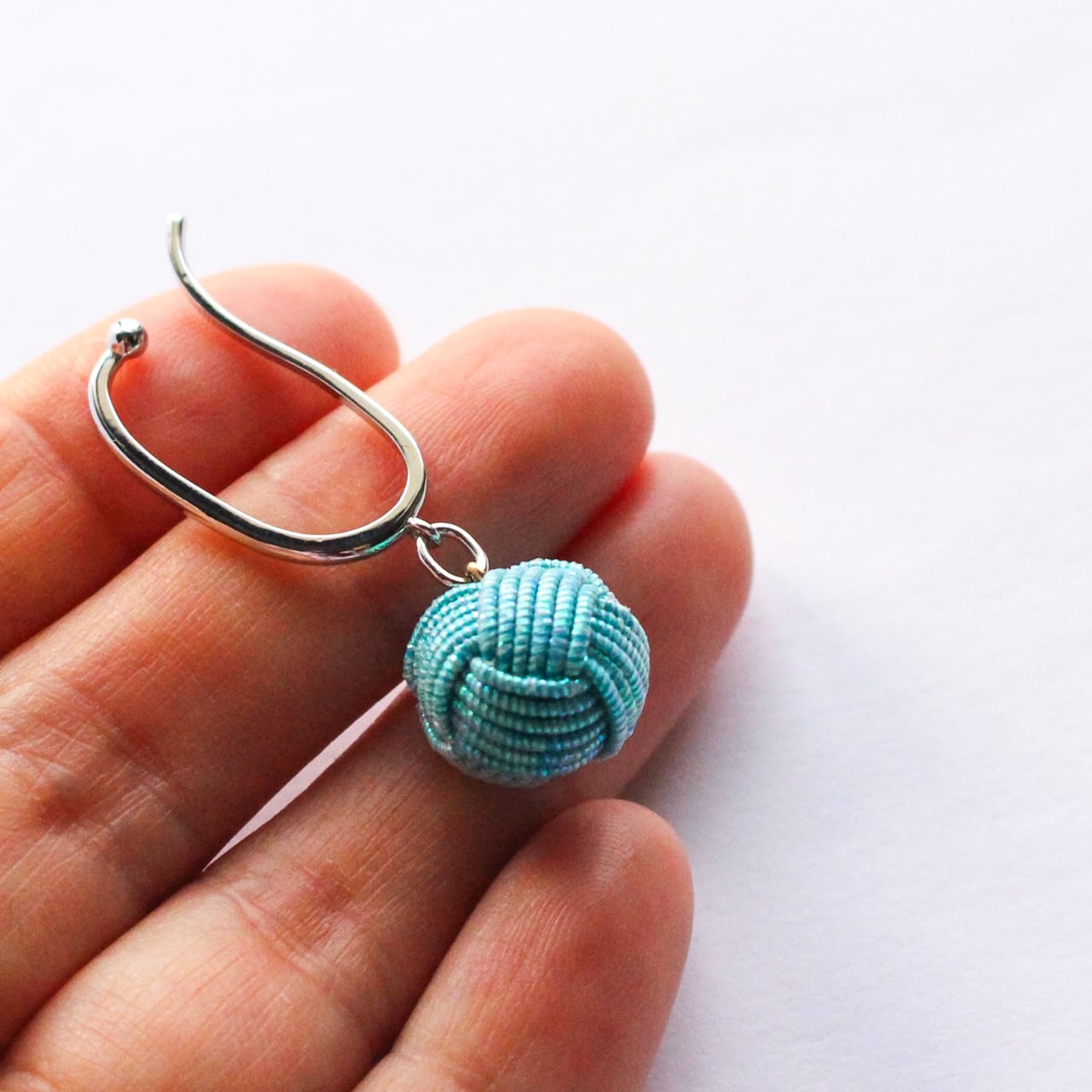 水引パール イヤーカフは、丸くまとまり末永く続くご縁を願ってひとつひとつ手で大切に結ばれたあわじ玉結びを身にまとうアクセサリーです。およそ15mmの大粒あわじ玉結びは、まるで特別な和宝石を身に着けているような奥ゆかしい気分にさせてくれます。