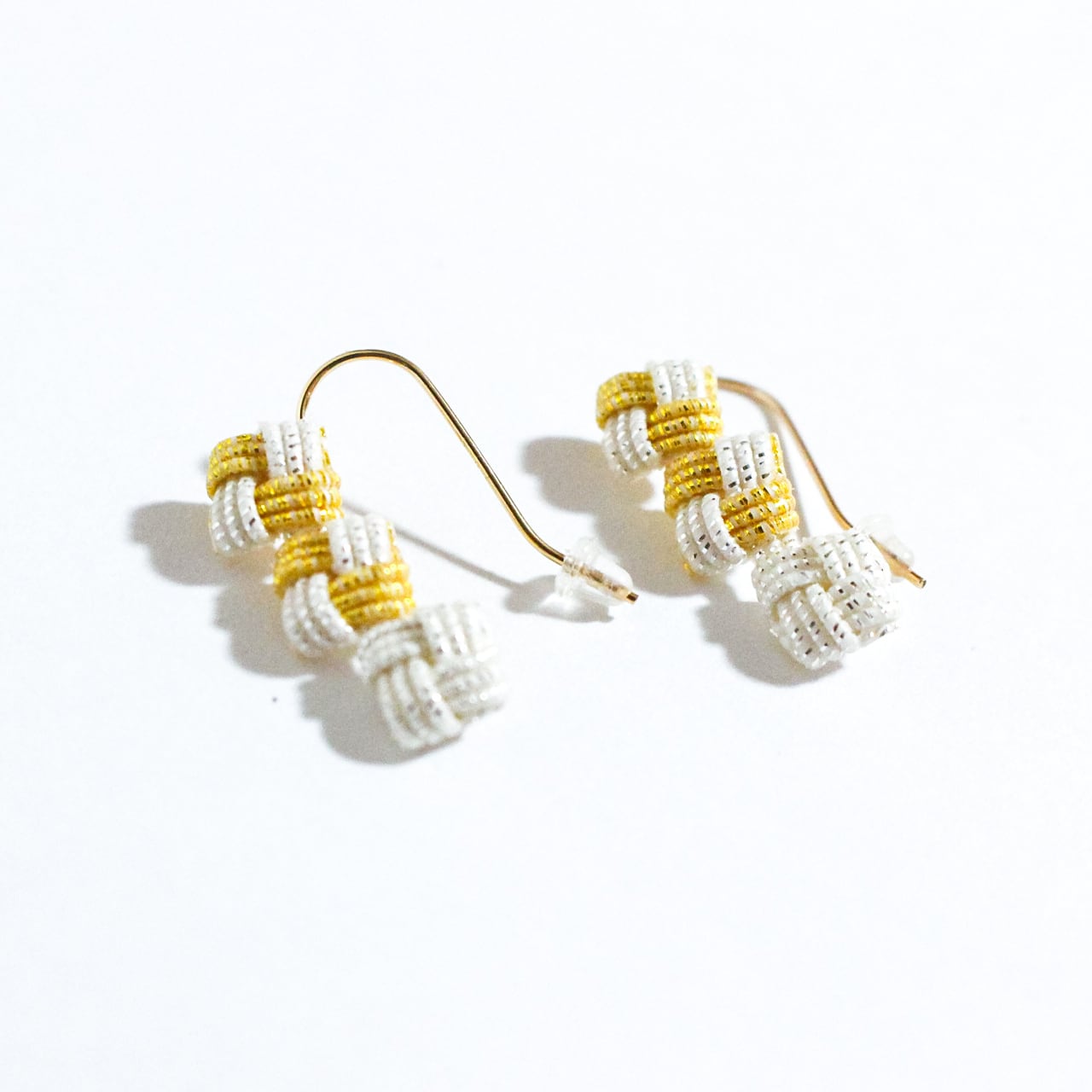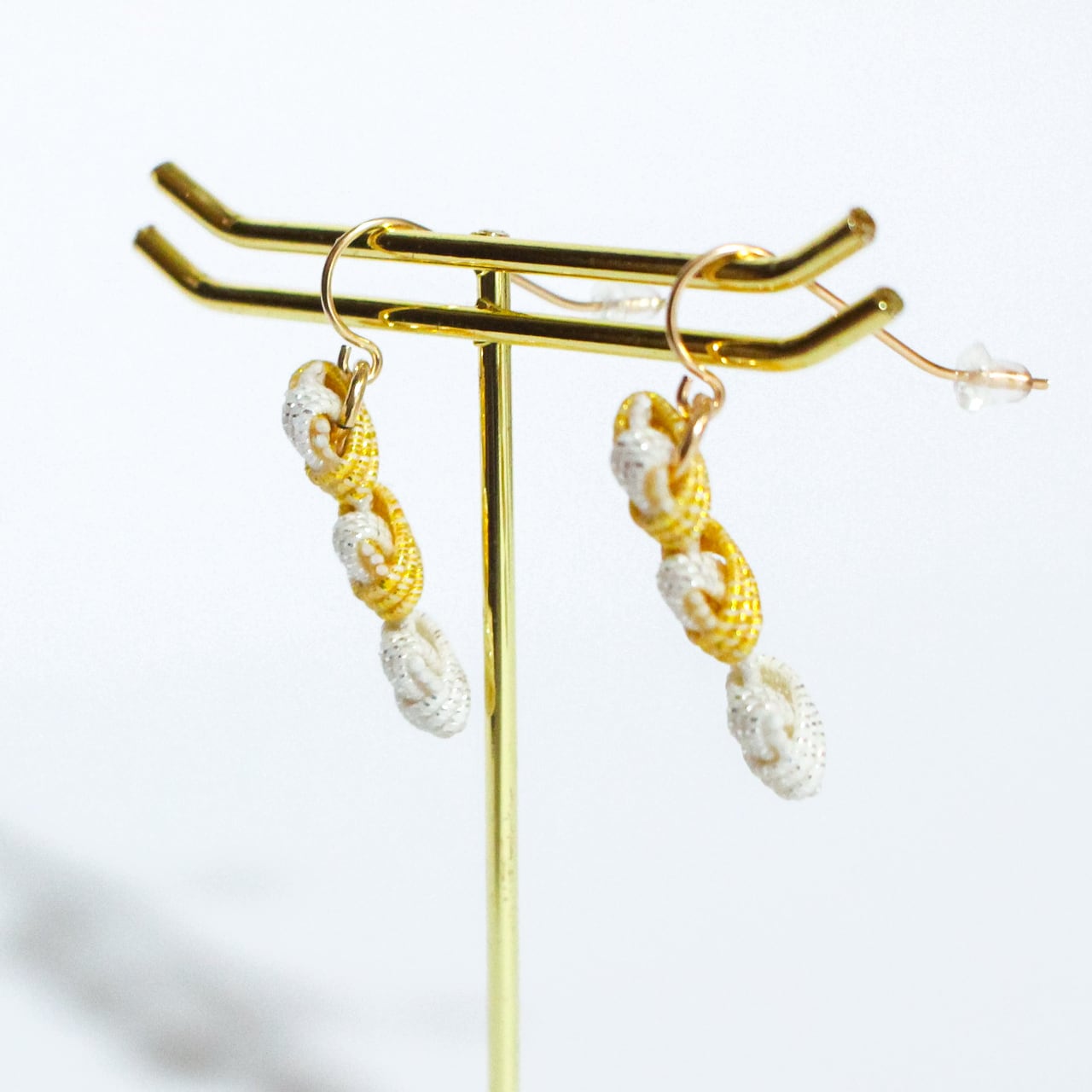 古来から伝わる日本の伝統的な縁起物、神社や祭祀で見るあのギザギザの紙「御幣(ごへい)」をイメージした水引ピアス・イヤリングです。