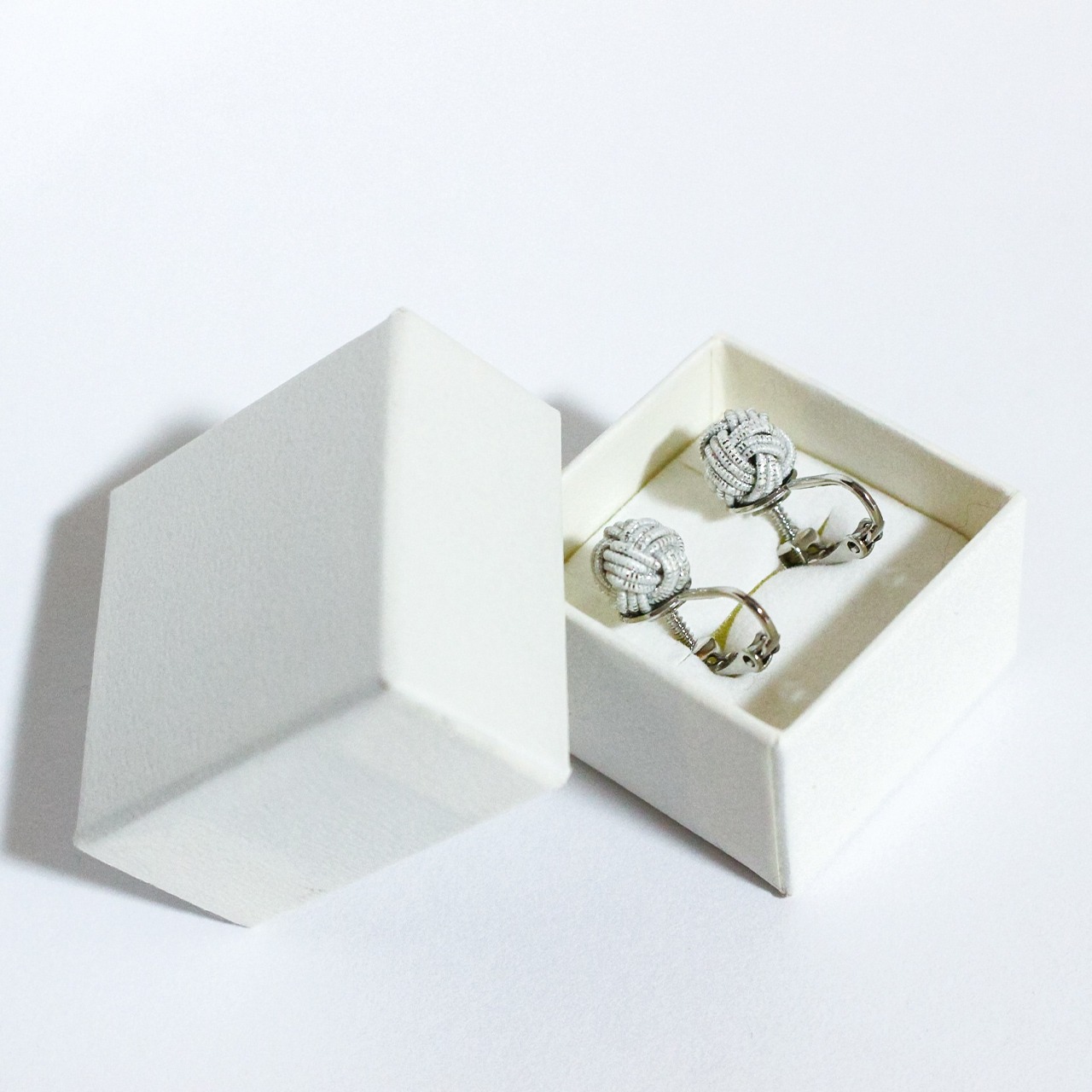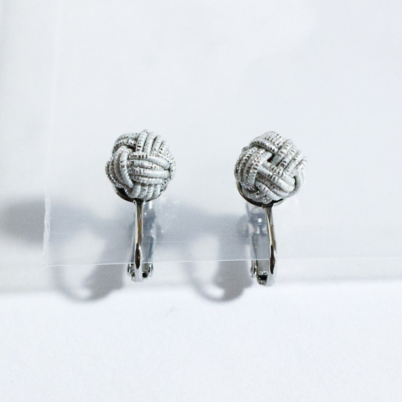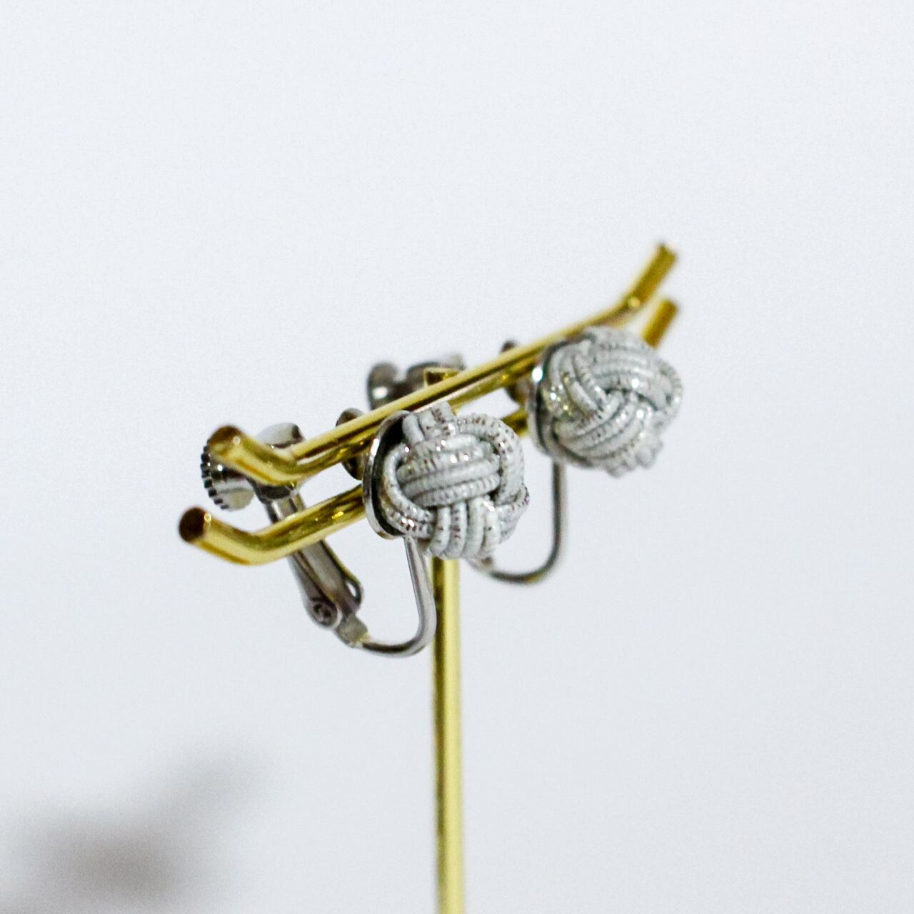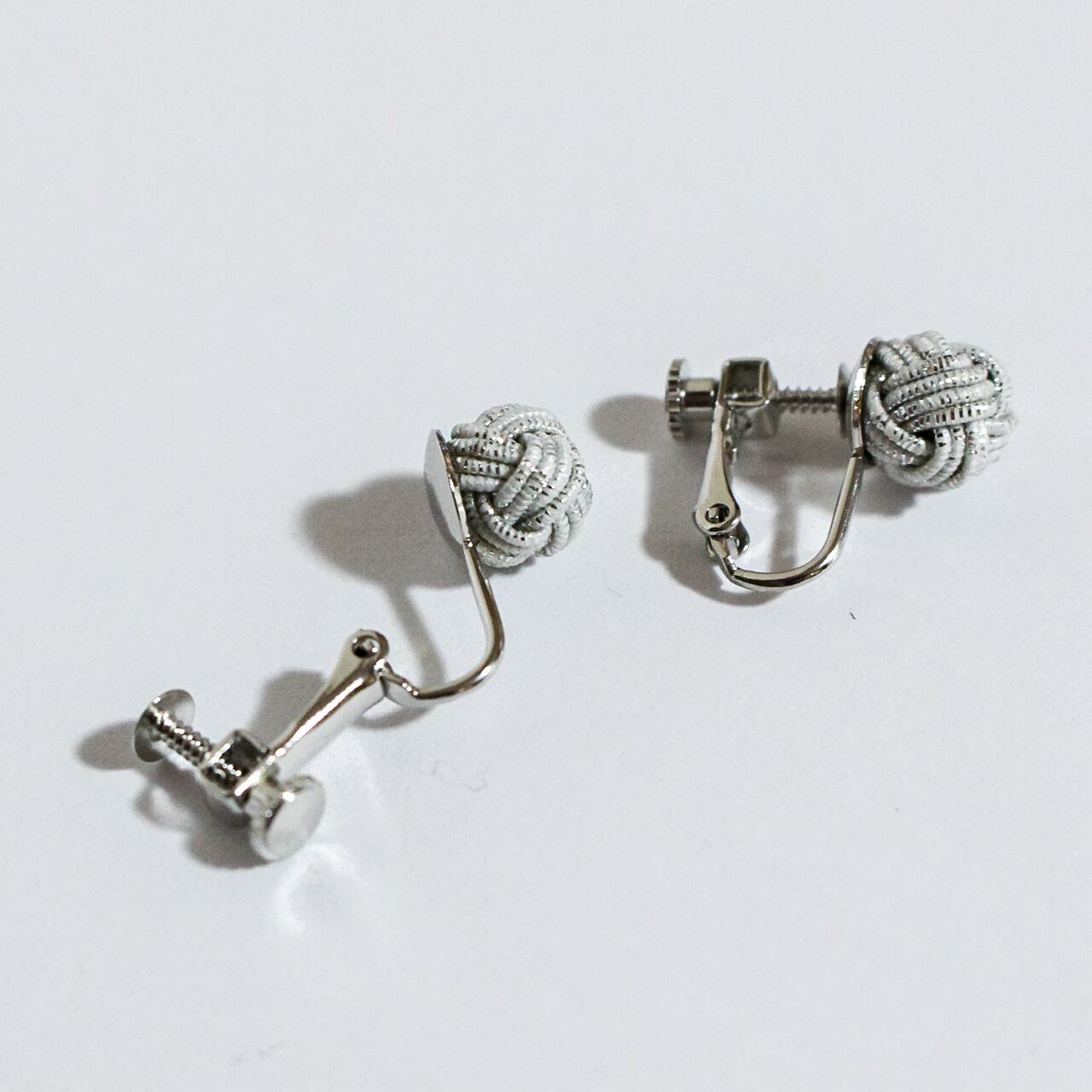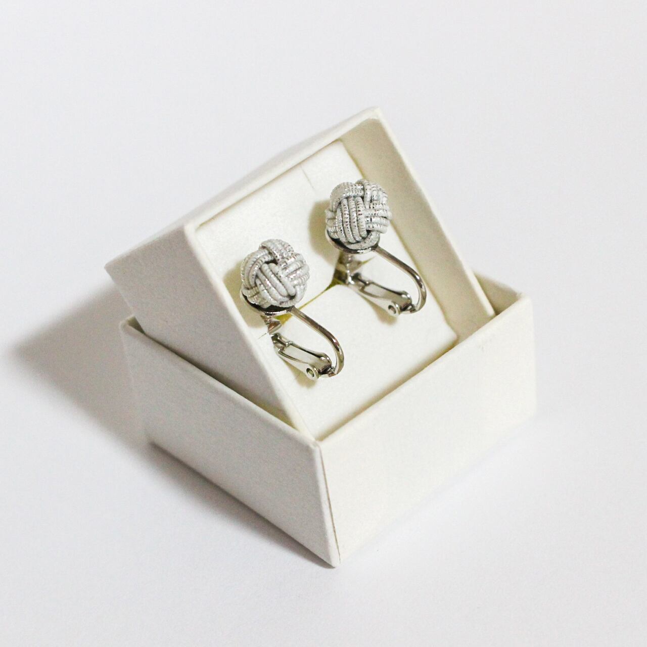 日本の伝統工芸「水引細工」の“あわじ玉結び”で結ばれた水引イヤリングです。