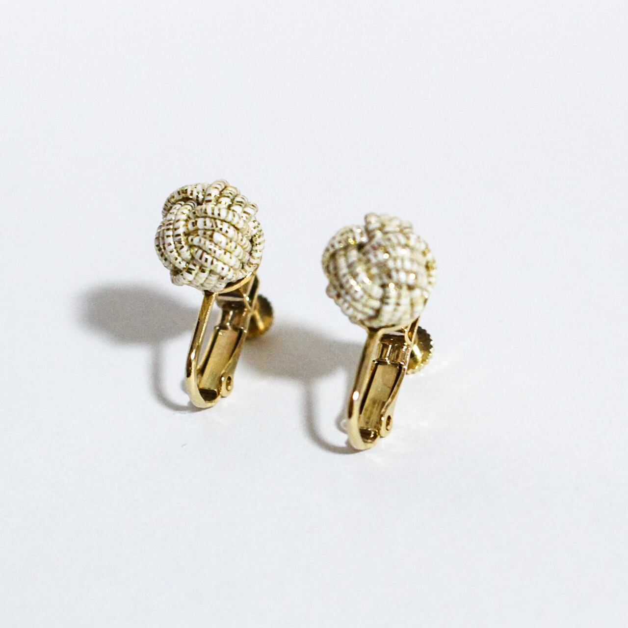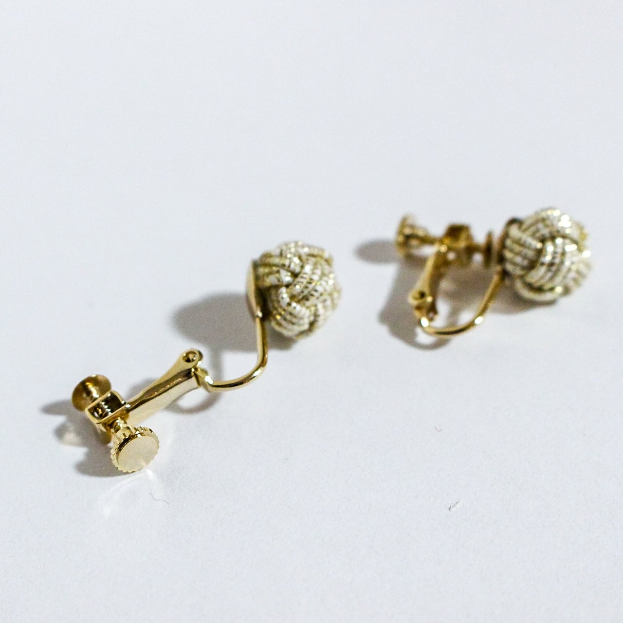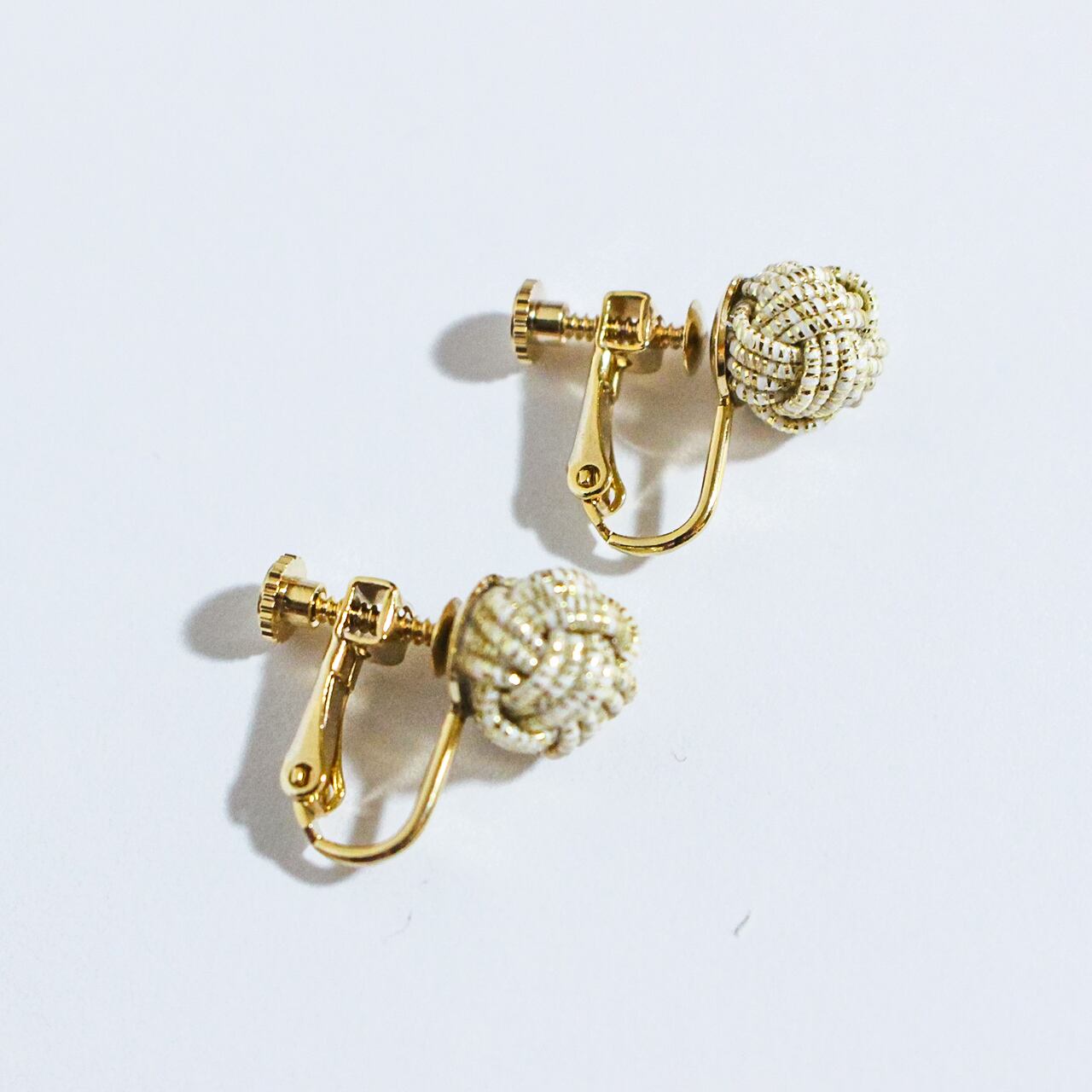 日本の伝統工芸「水引細工」の“あわじ玉結び”で結ばれた水引イヤリングです。