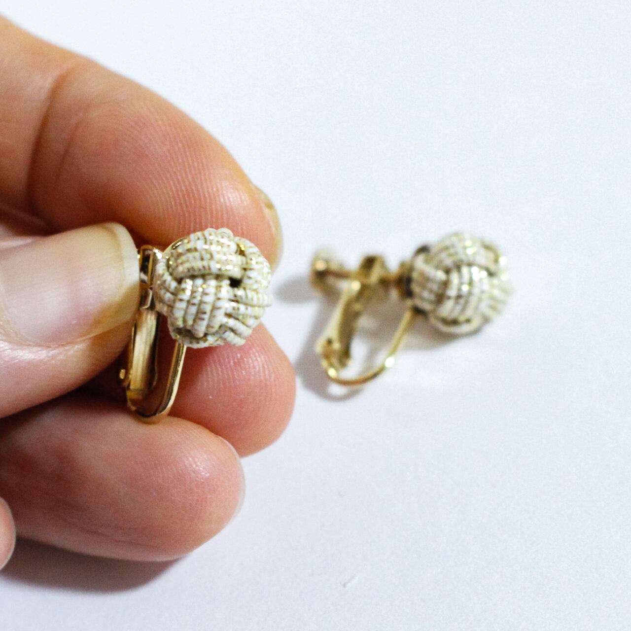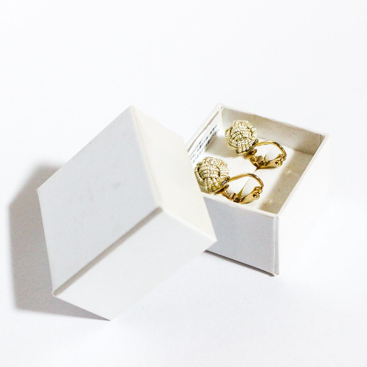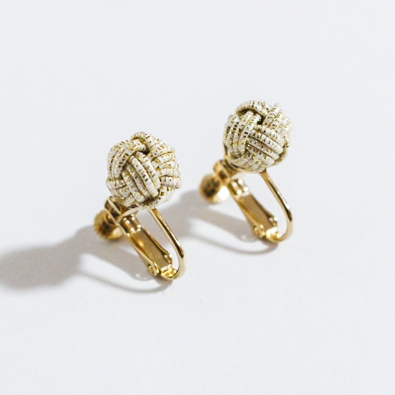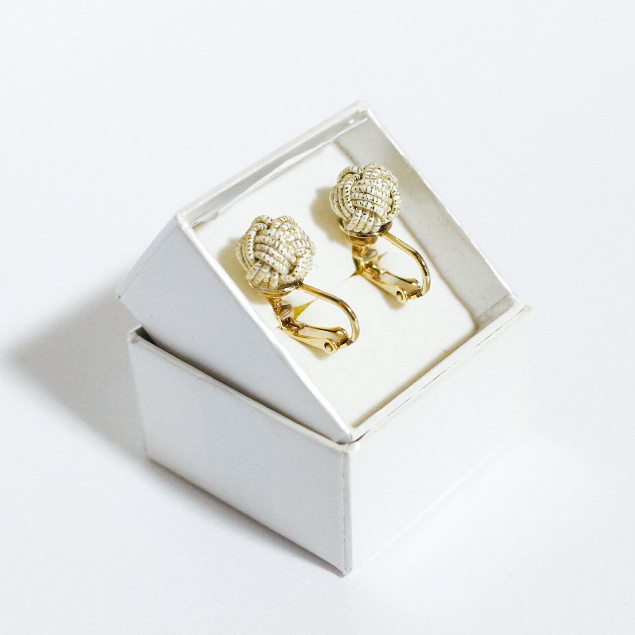 日本の伝統工芸「水引細工」の“あわじ玉結び”で結ばれた水引イヤリングです。