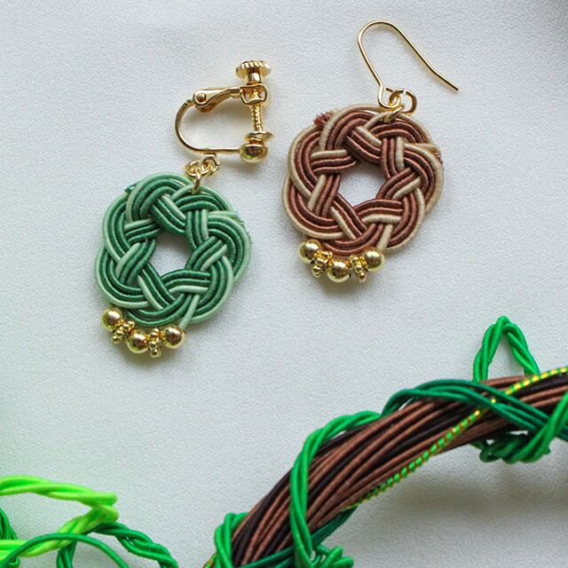 結びの森の「熟成果実」で作られた水引ピアス・イヤリングです。