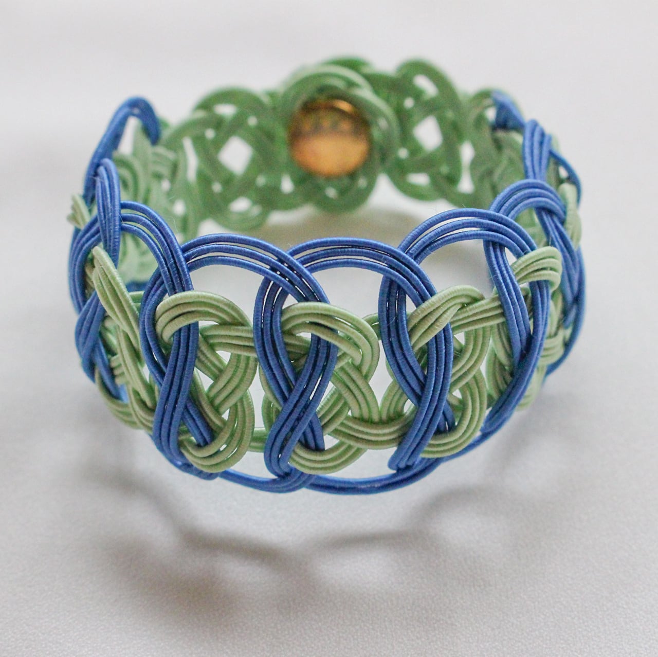 日本の伝統工芸「水引細工」でぐるっと一周結ばれたリバーシブル水引バングル ミントグリーン&ブルーです。