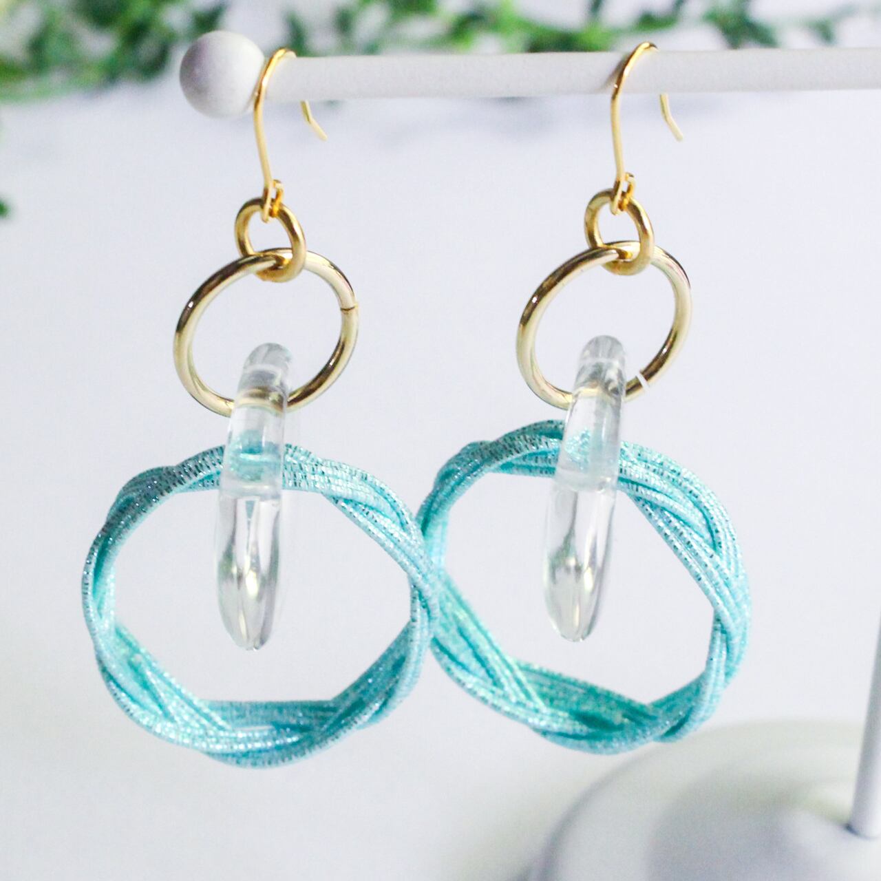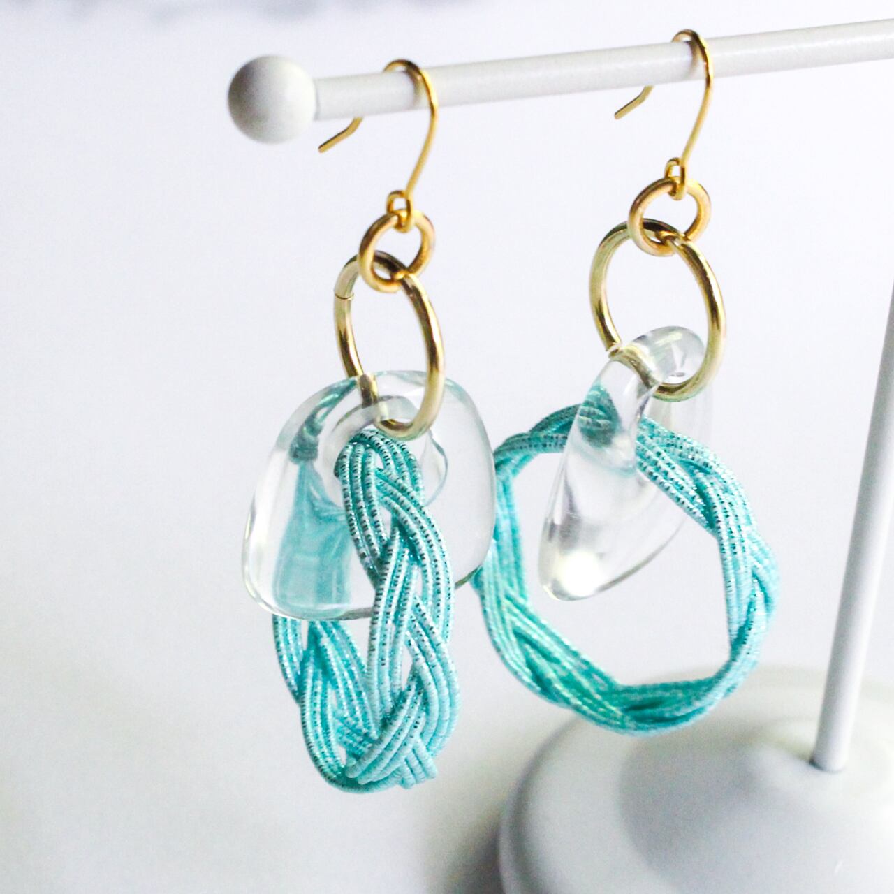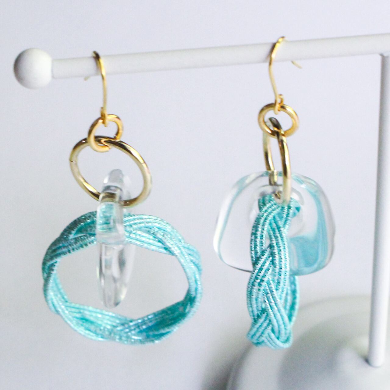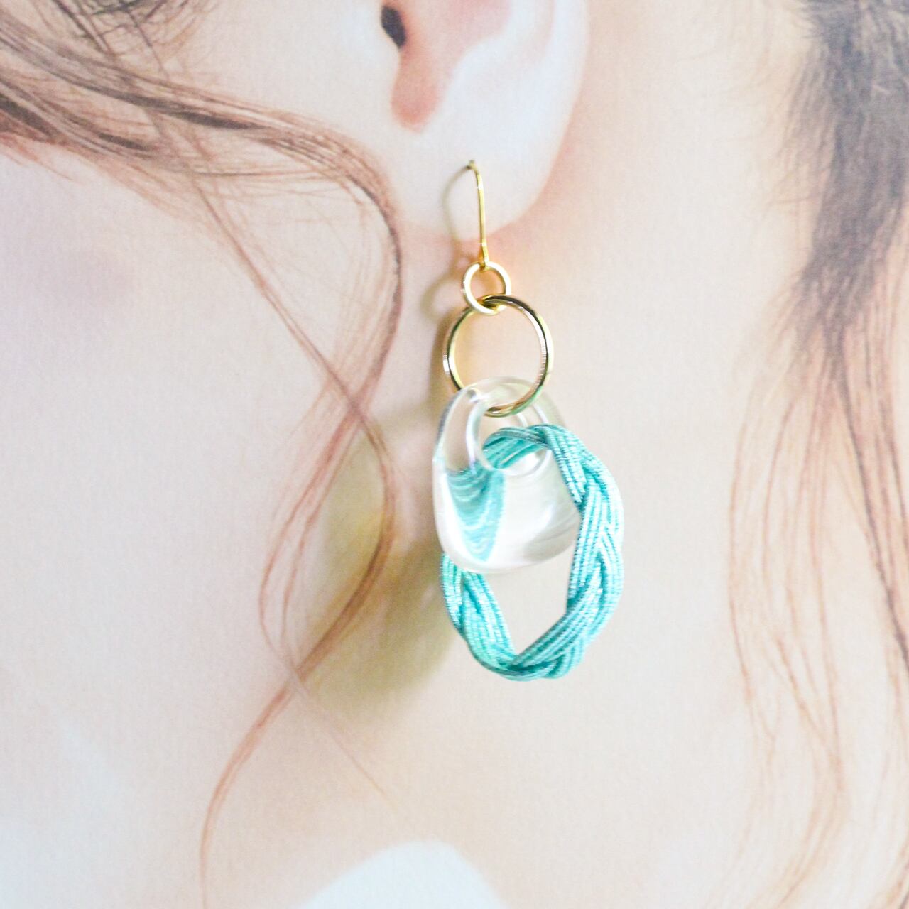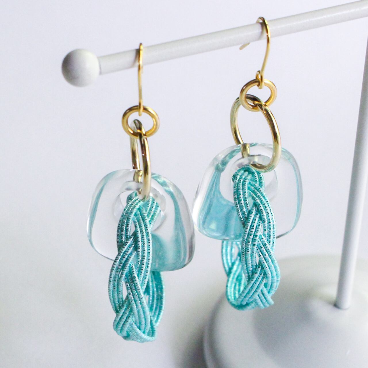 キラッと輝くアクアブルーの水引結びは向きによって形を変える遊び心のあるデザインです。